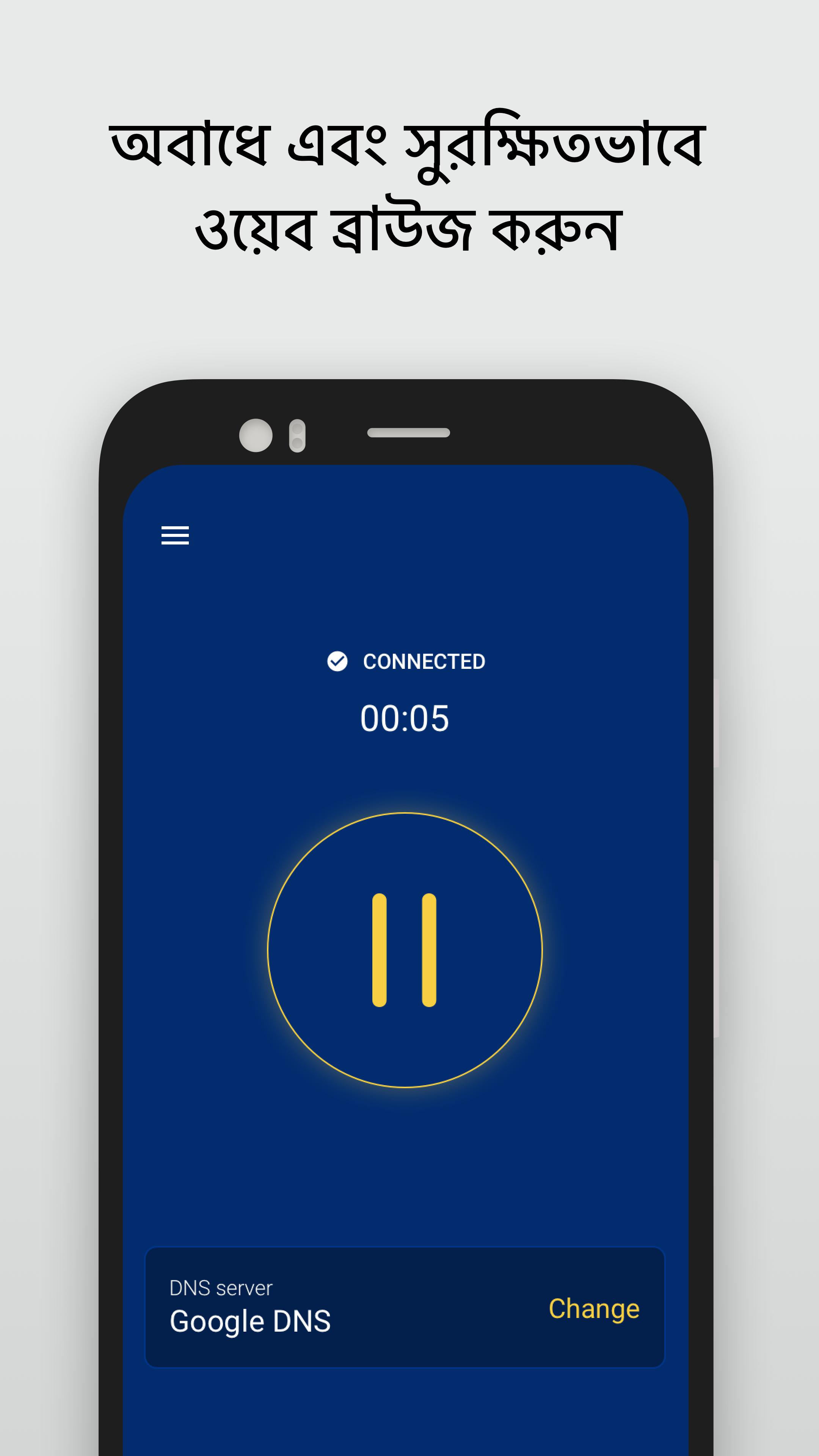 দ্রুত ডিএনএস চেঞ্জার আপনার জন্য দ্রুততম ডিএনএস ঠিকানা খুঁজে পাচ্ছে, আপনি কেবল সংযোগ বোতামে ক্লিক করতে পারেন এবং আপনার অ্যাপ্লিকেশন এবং ইন্টারনেট সাইটে প্রবেশ করতে পারেন।