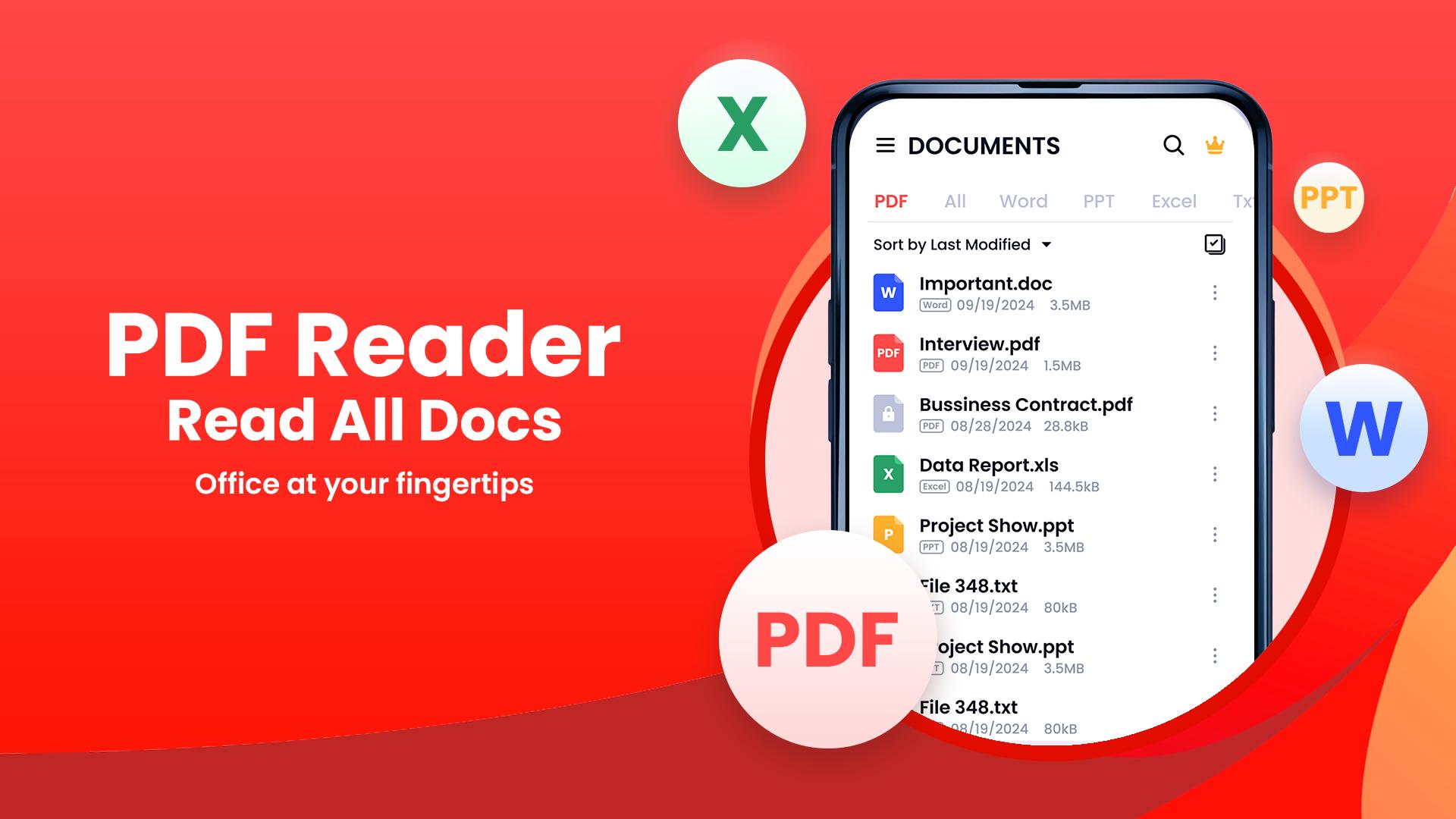 - আপনার সমস্ত ফাইল স্বয়ংক্রিয়ভাবে অনুসন্ধান এবং প্রদর্শন করুন: PDF, Word, Excel, PPT