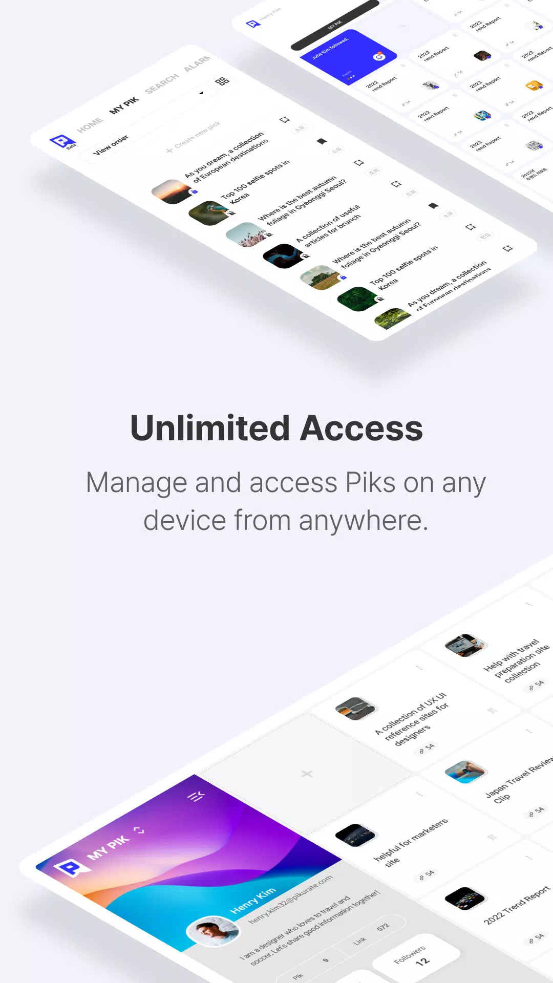 • একটি ভাল Pik খুঁজে? আপনি এটি সংরক্ষণ করতে পারেন এবং যেকোনো ডিভাইস থেকে যেকোনো সময় এটি অ্যাক্সেস করতে পারেন।