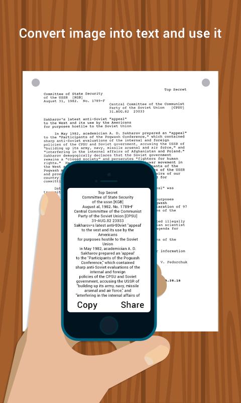 Document scanner will enable you to scan any document, convert image into text from the document. You can save the document in image form or text form. You can convert any document into PDF file.