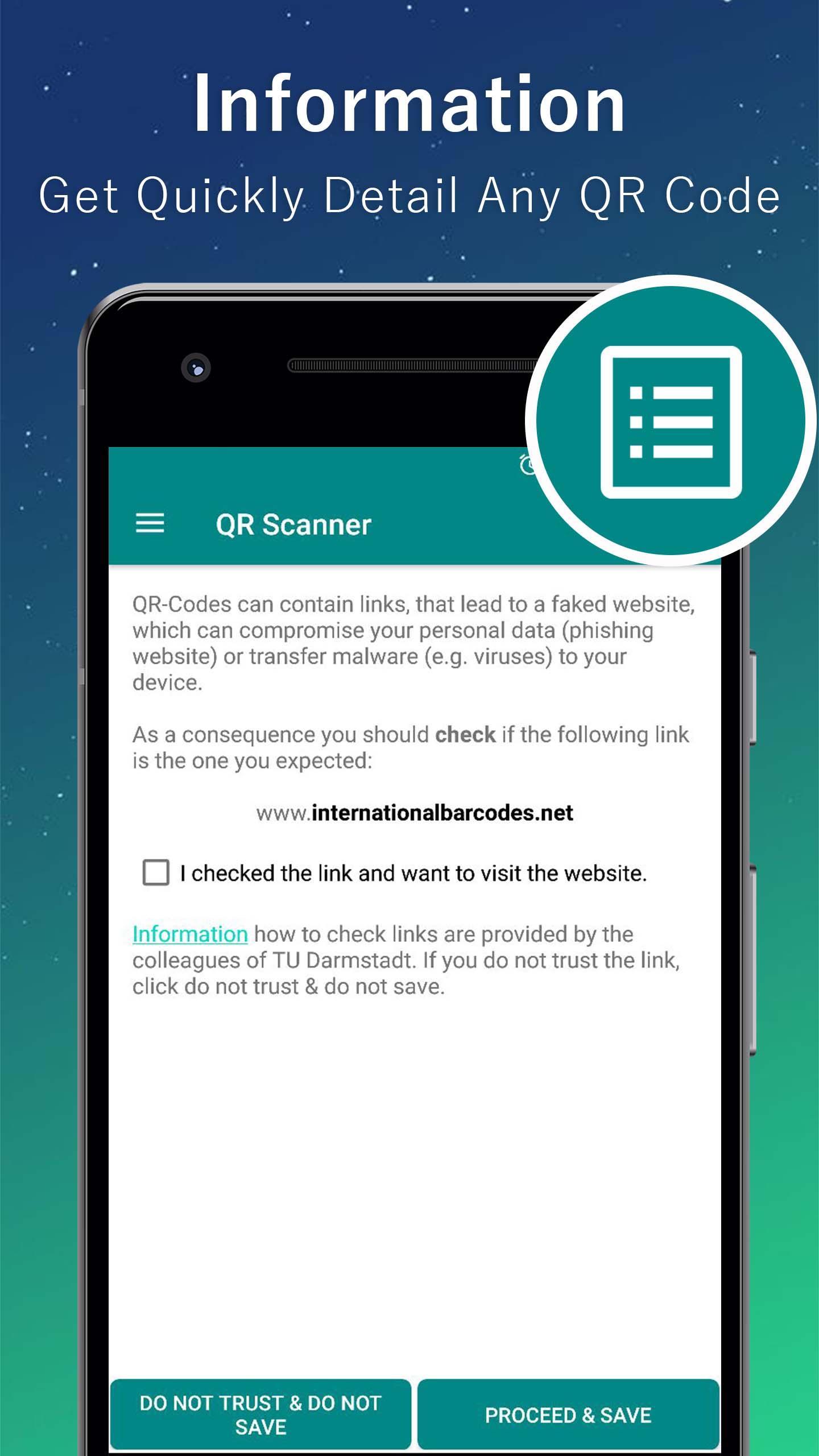 QR & Barcode Scanner can scan and read all QR / barcode types including text, url, ISBN, product, contact, calendar, email, location, Wi-Fi and many other formats.