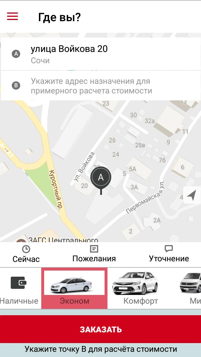 - Заказ авто без звонка диспетчеру. Отметьте точку на карте, не нужно писать длинный адрес вручную;