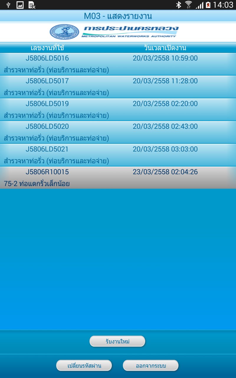 แสดงรายการงานบนอุปกรณ์พกพา เป็นงานที่ได้รับการมอบหมายให้ปฏิบัติงาน สำหรับกองบำรุงรักษา การประปานครหลวง