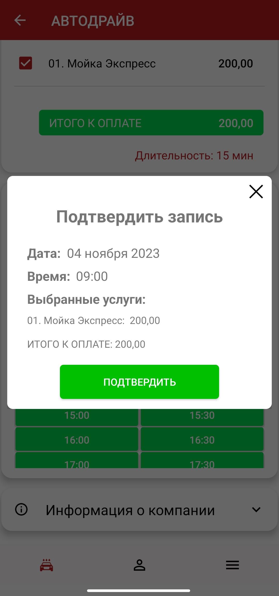 Este aplicativo permite que você escolha um horário conveniente para visitar o complexo de lavagem de carros.