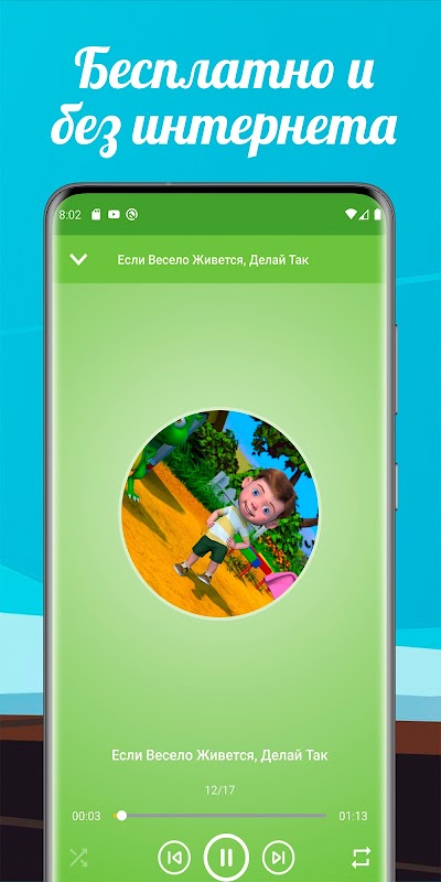 Приложение детские песни полностью бесплатное и все песни можно слушать без интернета.