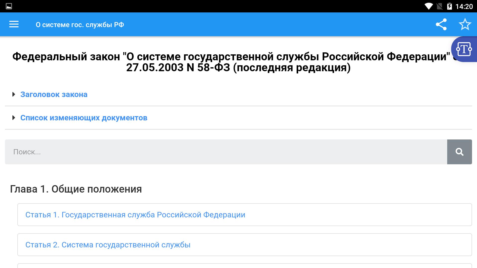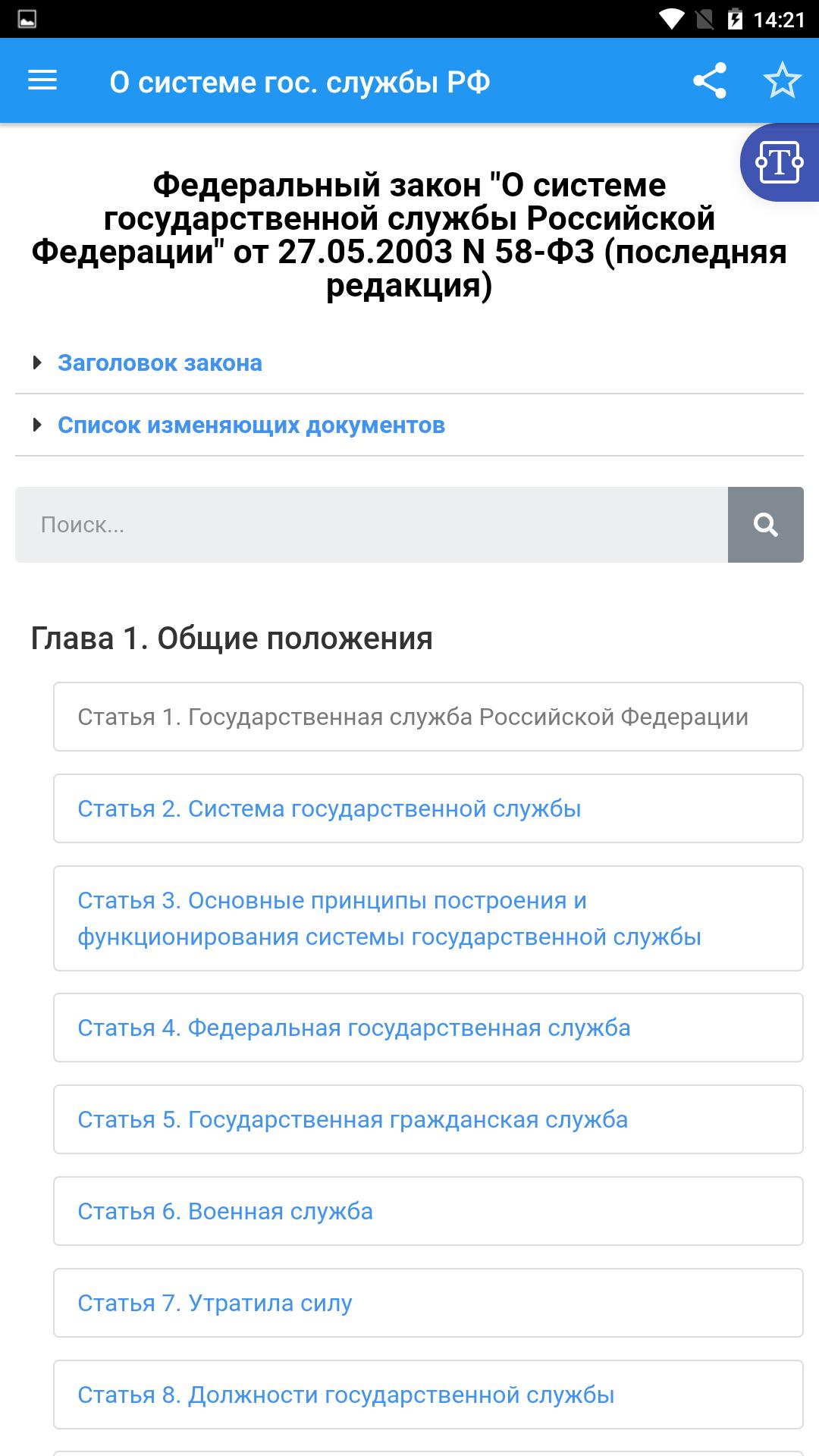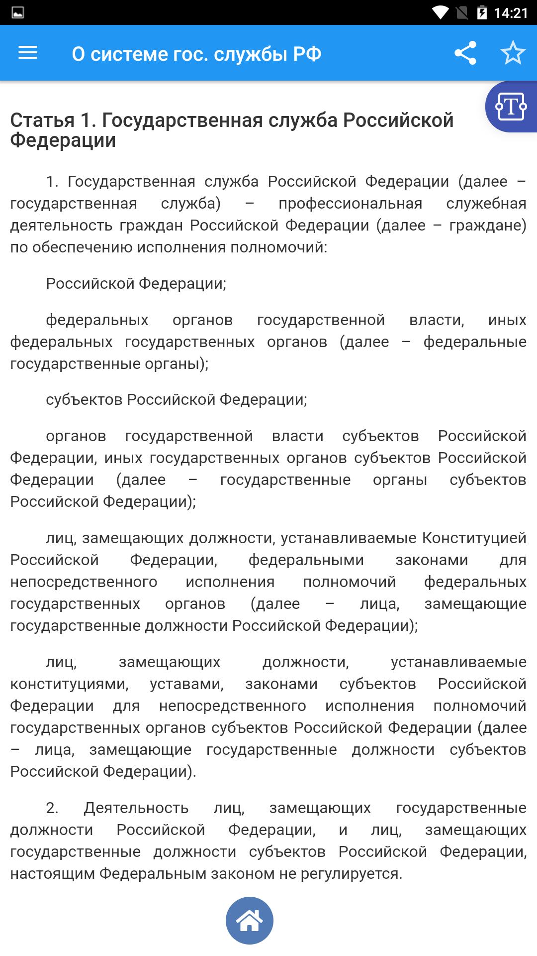 Os fundamentos jurídicos e organizacionais do sistema de serviço do Estado da Federação Russa são determinados, que é formado por três tipos de serviço do estado federal (serviço público do estado federal, serviço militar, serviço de aplicação da lei) e serviço público do estado das entidades constituintes da Federação Russa.