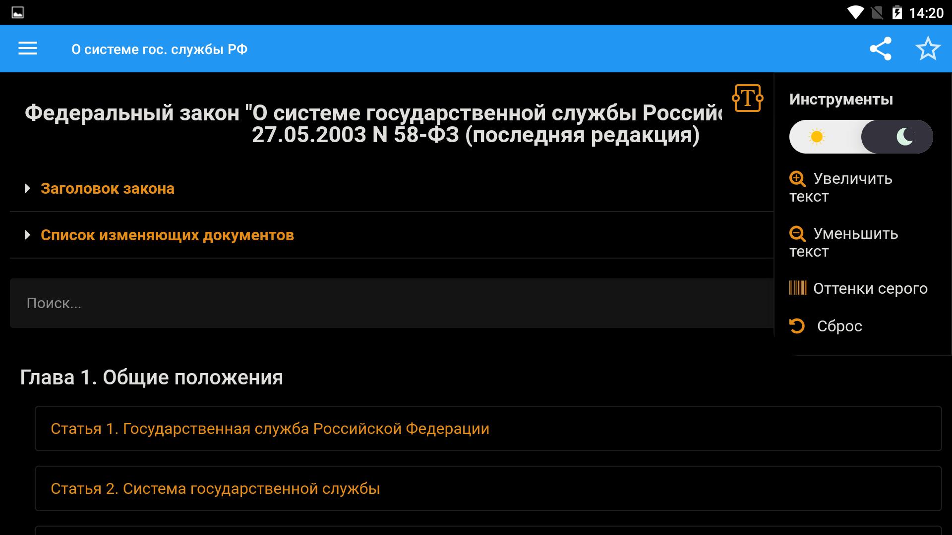 A lei fornece definições do serviço do estado federal e seus tipos, o serviço público estadual das entidades constituintes da Federação Russa, bem como o servidor público federal e o servidor público estadual da entidade constituinte da Federação Russa.