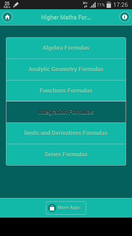 উচ্চতর গণিতের সূত্রাবলী এপস্ টি গণিতের ছাত্রদের জন্য এটা খুবই ভাল । এই এপস্ এ ২০০ টিরও বেশি সূত্র আছে।