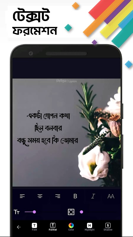 ডাউনলোড করুন "লিপিয়ন - ছবিতে বাংলা লিখন" এপ, আর ছবিতে বাংলা যুক্ত করুন পছন্দমতো স্টাইলে।