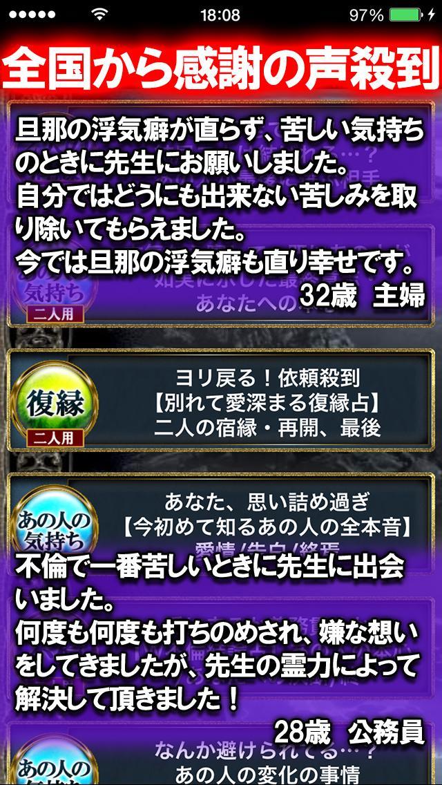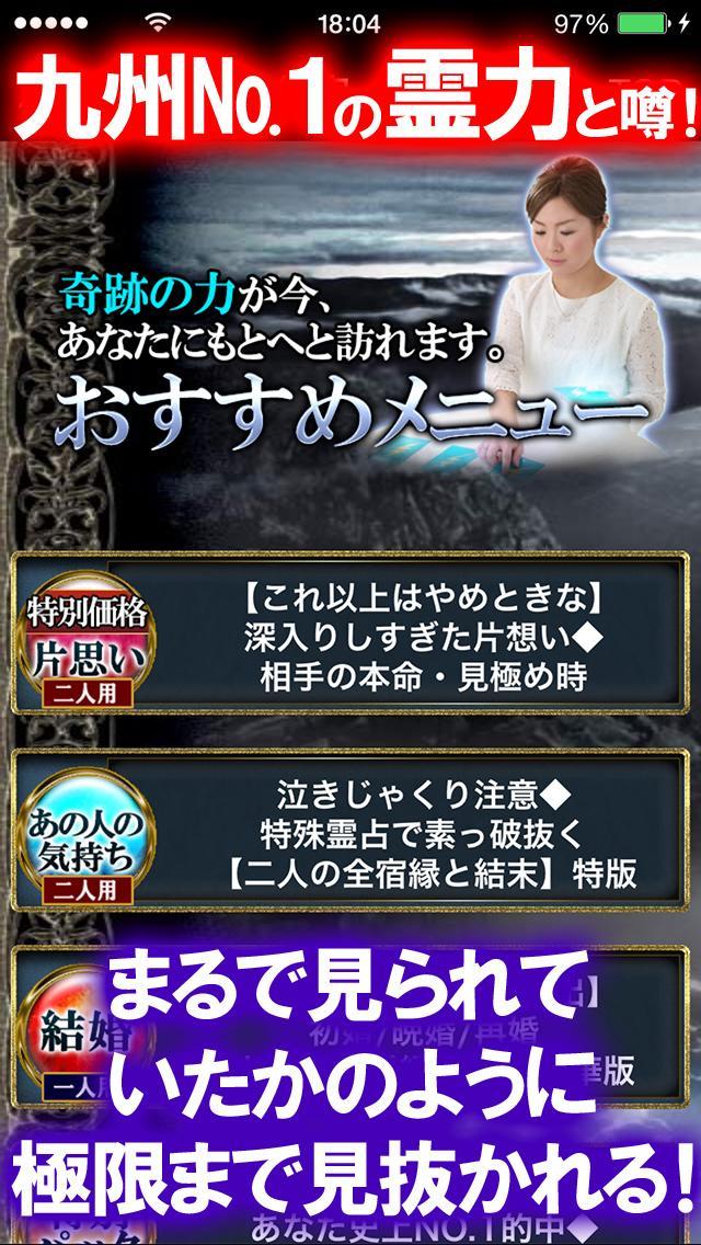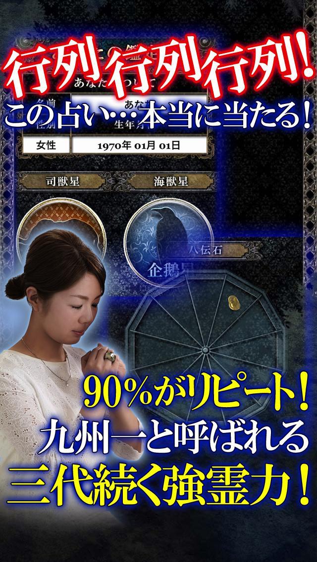 世界にただ一人。占い師が羨む的中力があなたの手の中にやってきます。リピート率90%を誇る九州一と噂の占いを体感してください。