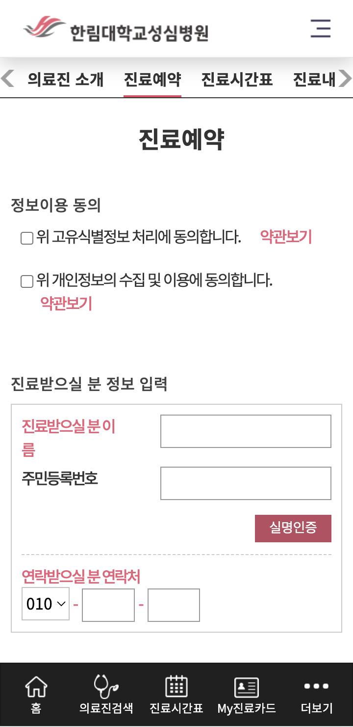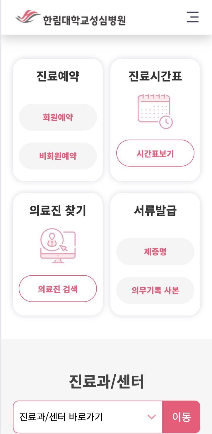Ao executar o aplicativo, você pode ir diretamente para a página inicial móvel do Hallym University Sacred Heart Hospital.