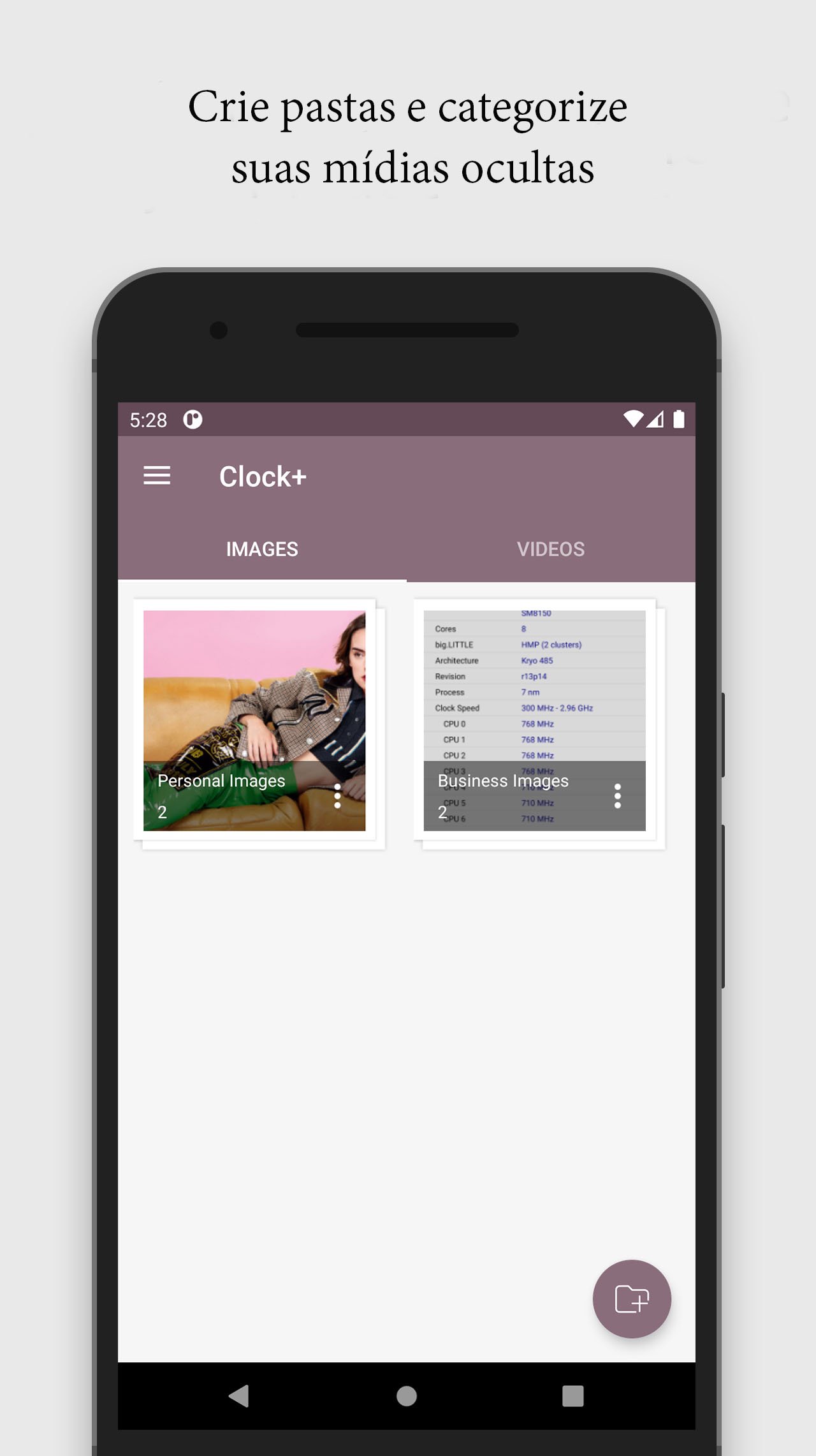 - Cofre escondido, facilita a proteção de seus arquivos privados, garantindo que seu arquivo esteja seguro, mesmo que seu telefone seja perdido ou danificado.