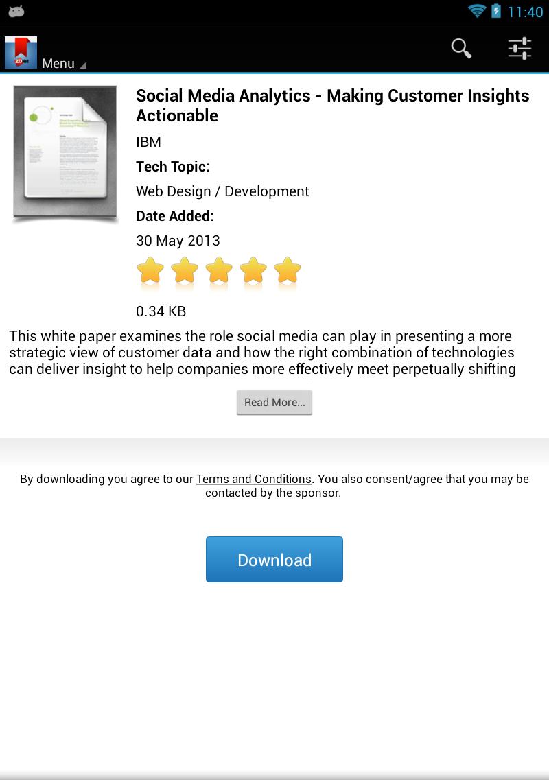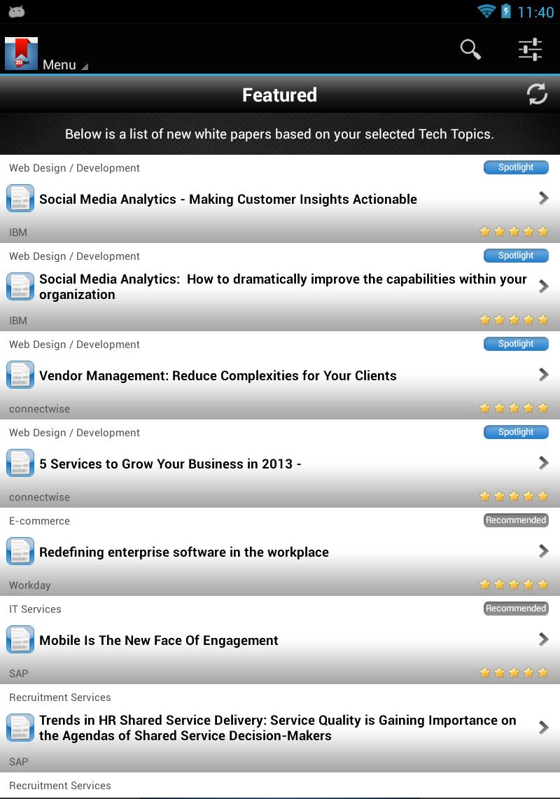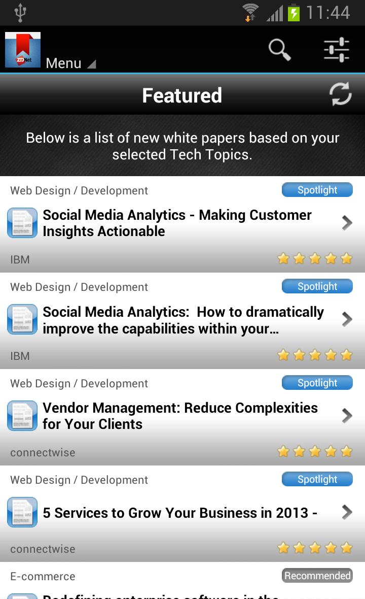 The ZDNet TechLibrary app offers business, marketing and technology professionals the opportunity to explore the latest trends and keep up to date with technology information by providing quick and easy access to the world's largest directory of free technology white papers from leading IT vendors!