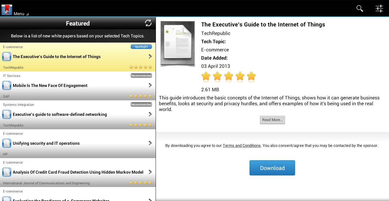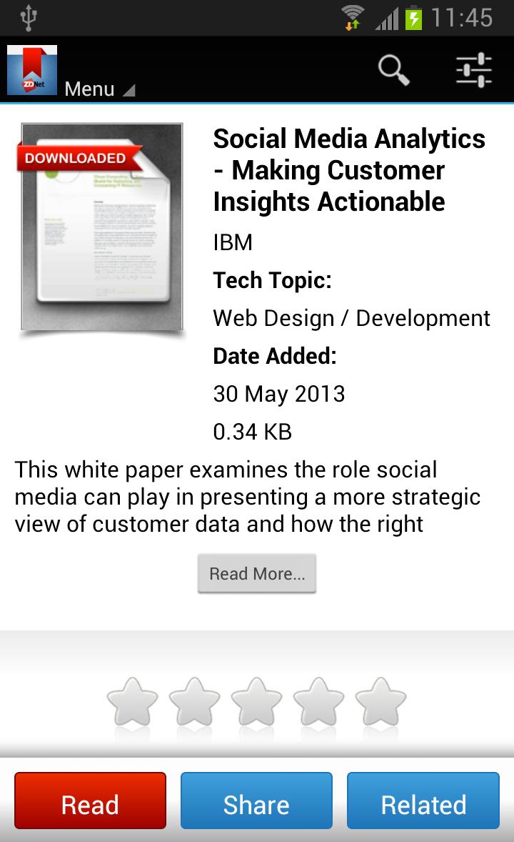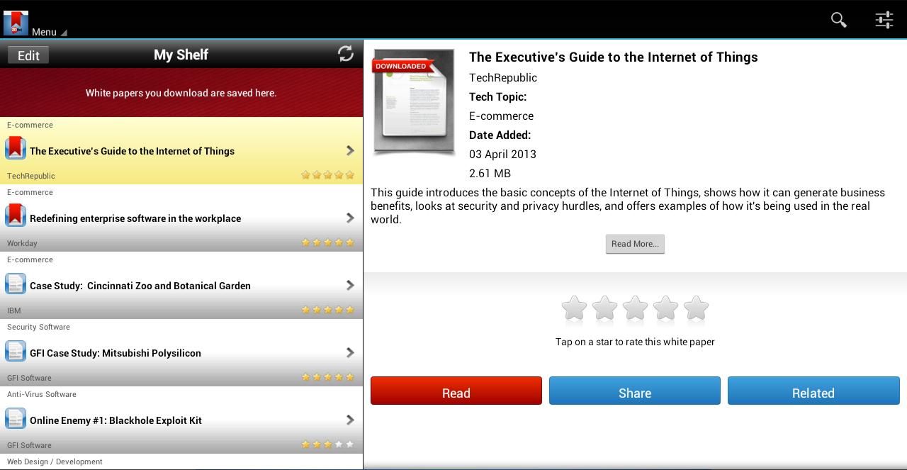 - Option to share white papers to Facebook, Twitter and LinkedIn or via email to your friends and colleagues