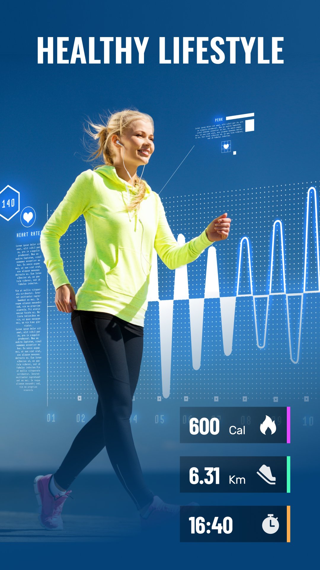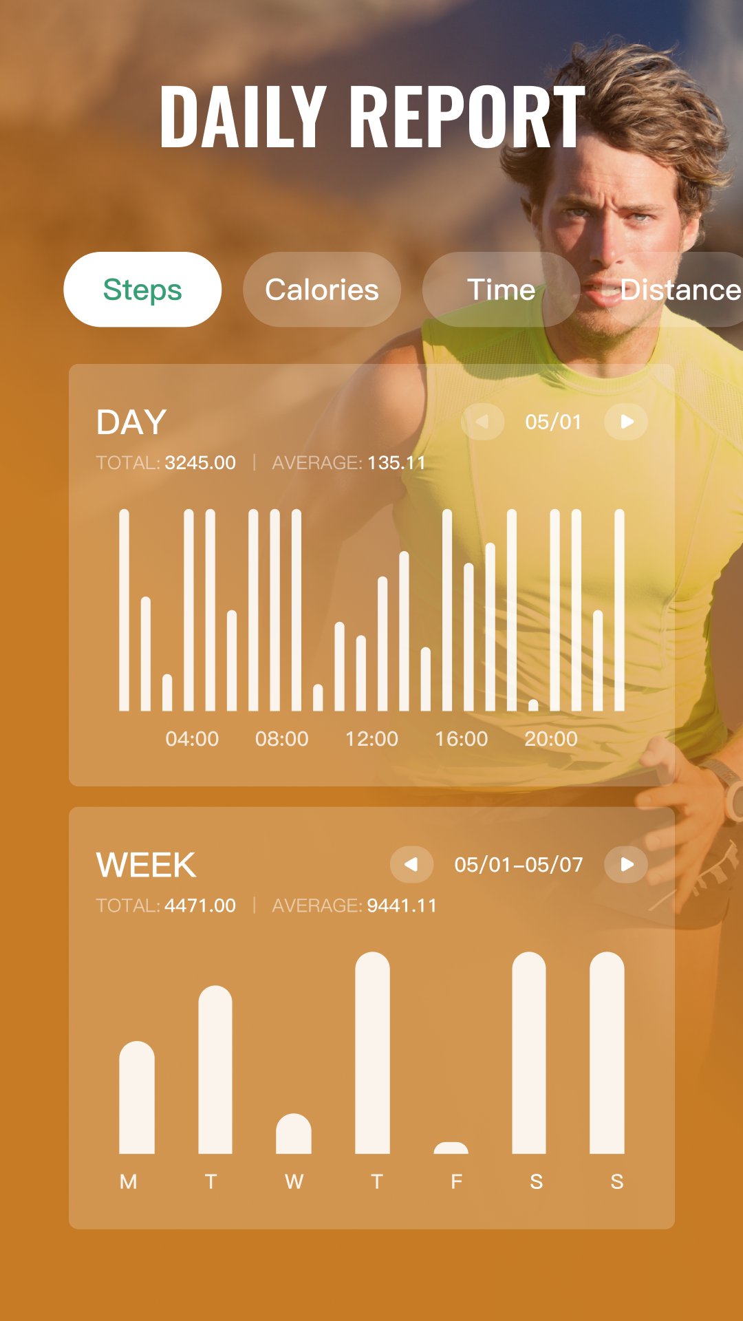 Jolly Steps é um aplicativo divertido e fácil de usar que rastreia seus passos diários e calorias queimadas, exibindo-os em gráficos intuitivos.