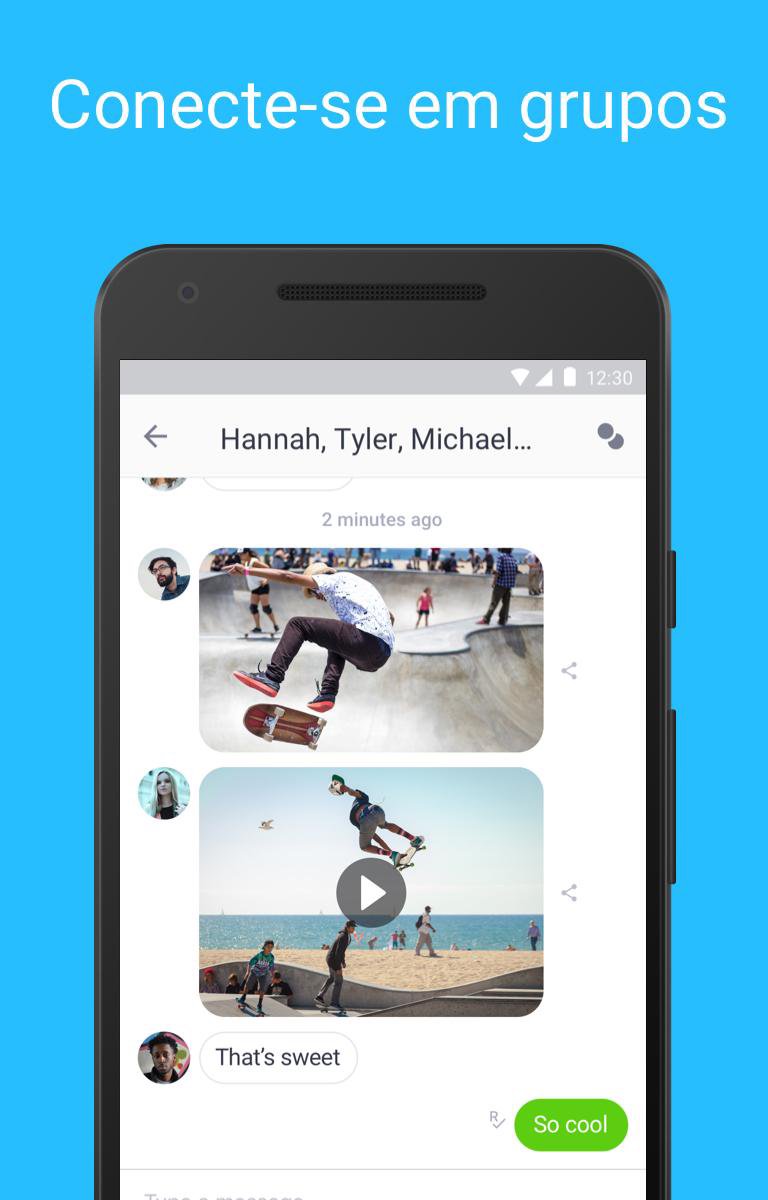 • Inicie uma conversa de grupo público com até 50 pessoas com apenas uma #hashtag. Ou crie um grupo privado.
