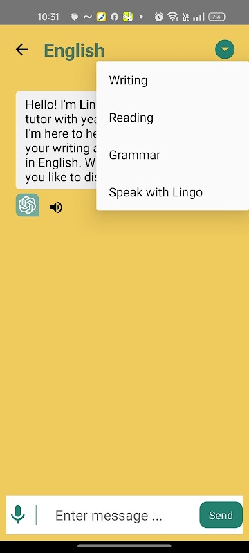 Obtenha fluência com chats de voz e prática gramatical usando nosso aplicativo de IA, Lingo.