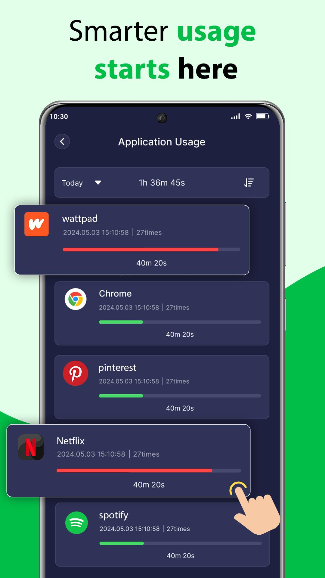 Monitor app usage time to understand how you spend time on your device and specific apps.