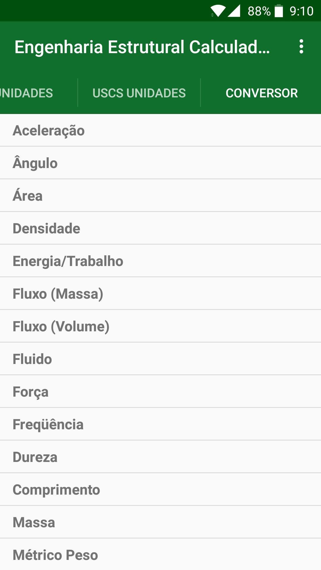 Engenharia Estrutural Calculadora também contém 32 Conversores de Unidades relacionadas à Estrutural e Engenharia Civil.