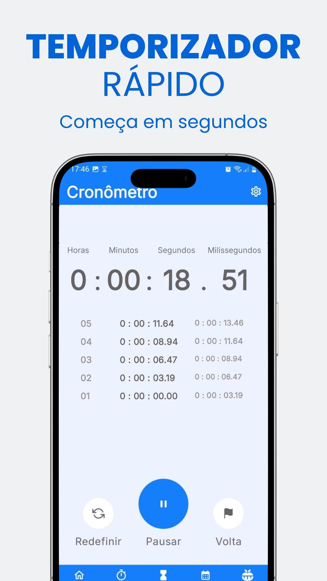 Acompanhe cada segundo com nosso aplicativo de cronômetro com precisão de milissegundos. Ideal para atletas e profissionais, ele inclui recursos de volta e uma lista de voltas rolável para ajudar você a analisar seu desempenho. Perfeito para sessões de treinamento, treinos e eventos que exigem cronometragem detalhada.