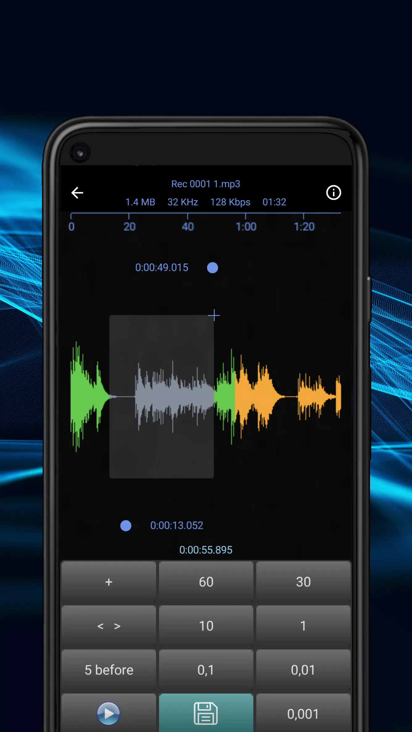 Gravador de voz para arquivos WAV e MP3 com cortador de áudio integrado.