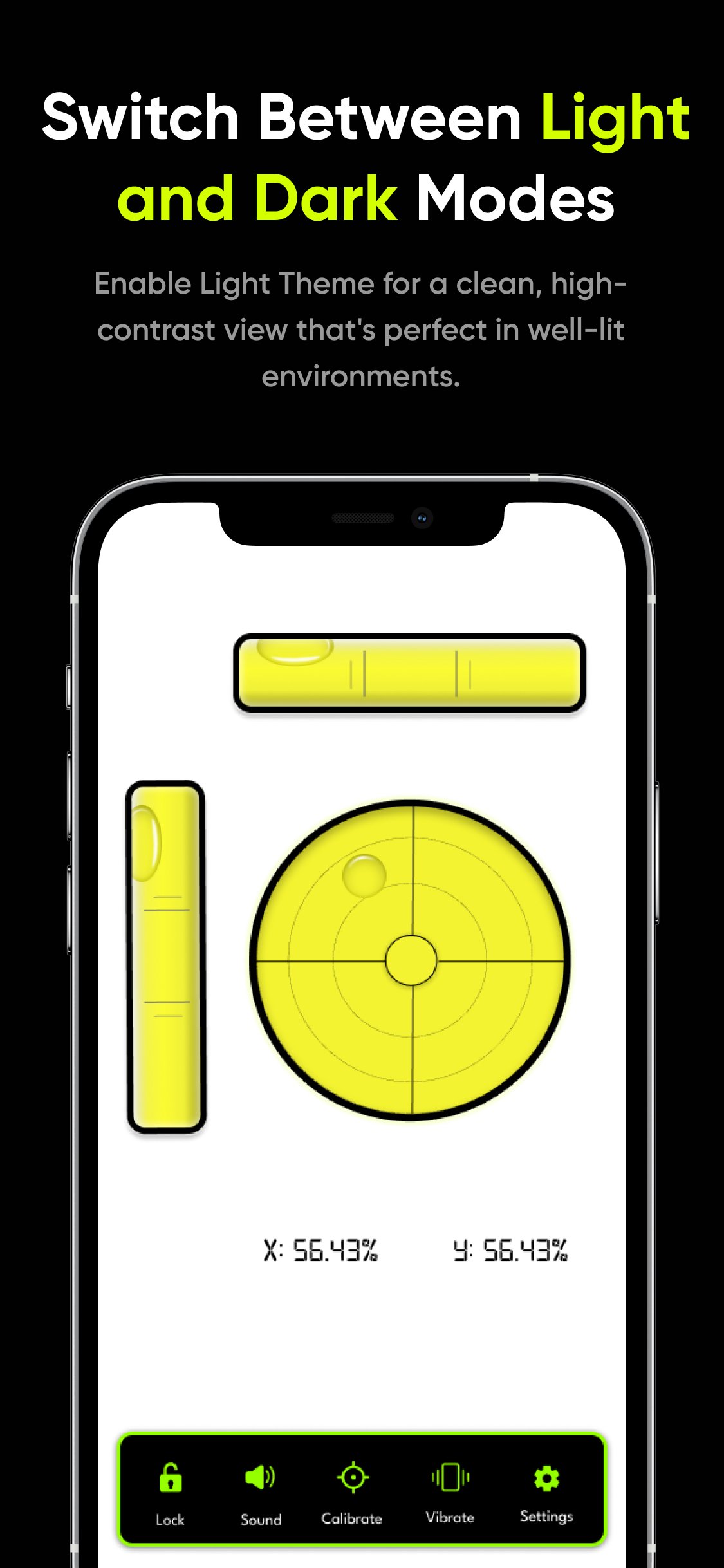 Get precise visual feedback for horizontal, vertical, and flat surfaces.