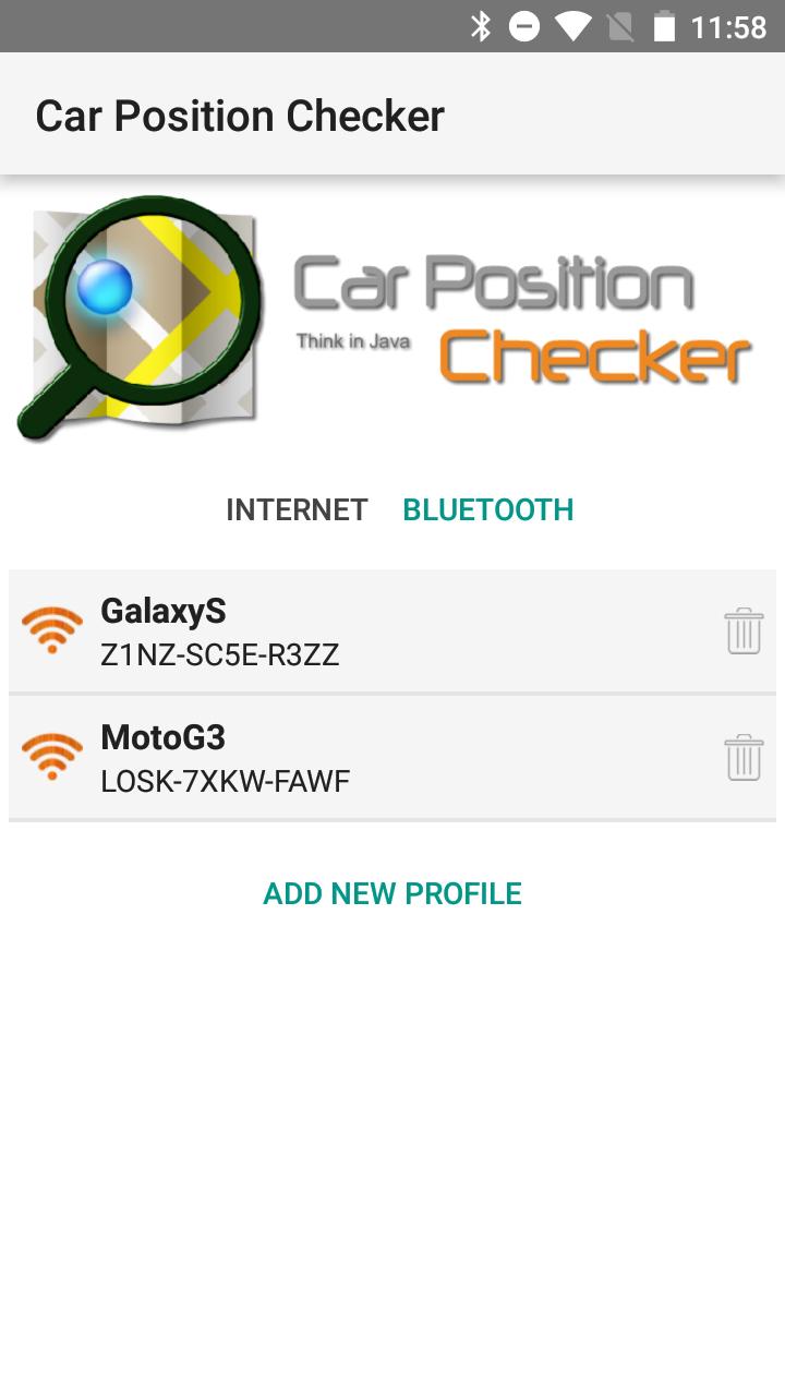 With this app you can control the Car Position Tracker installed on another device connecting via Bluetooth or via Internet.