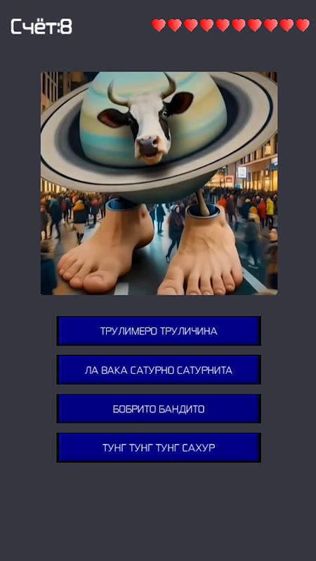 ❤️ 您有 10 条命 - 每次犯错都会消耗一条命。犯了错误?没关系,您可以重新开始,尝试打破自己的纪录!如果您足够幸运,就能在《意大利动物问答》中坚持到最后并正确回答所有问题。