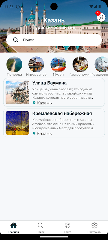 Are you planning a trip to Kazan? Our application will be your ideal assistant! Find out everything about the rich history of Kazan, its culture, unique traditions and famous sights. Explore every corner of this amazing city - from the Kazan Kremlin, listed as a UNESCO World Heritage Site, to the bustling Bauman Street, where every stone holds a story. Admire picturesque panoramas from the Kremlin embankment and discover little-known corners of Kazan that only locals know about.