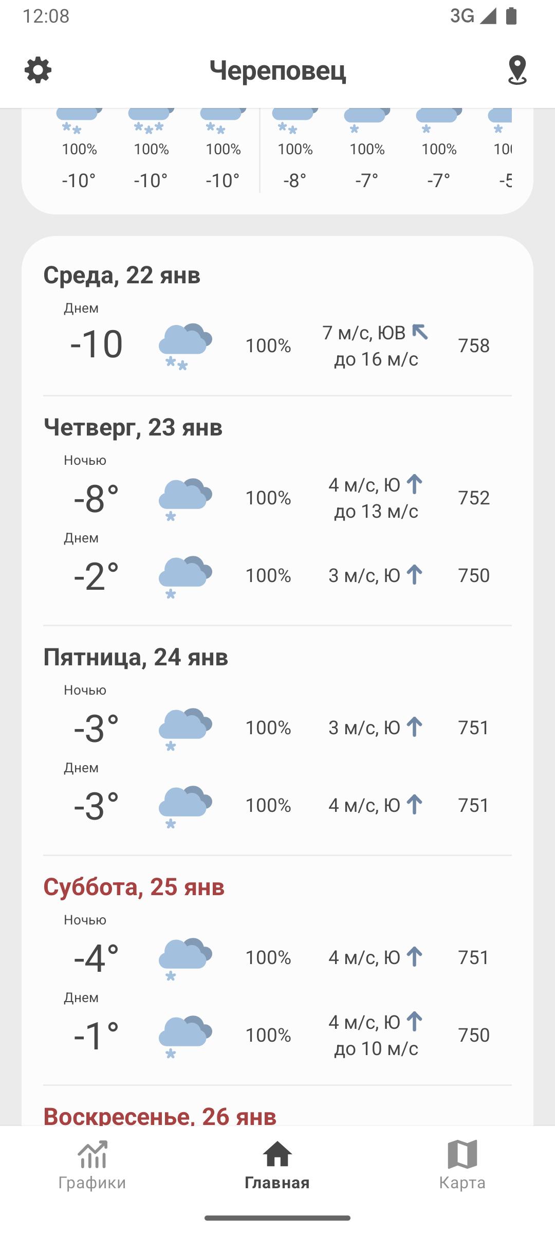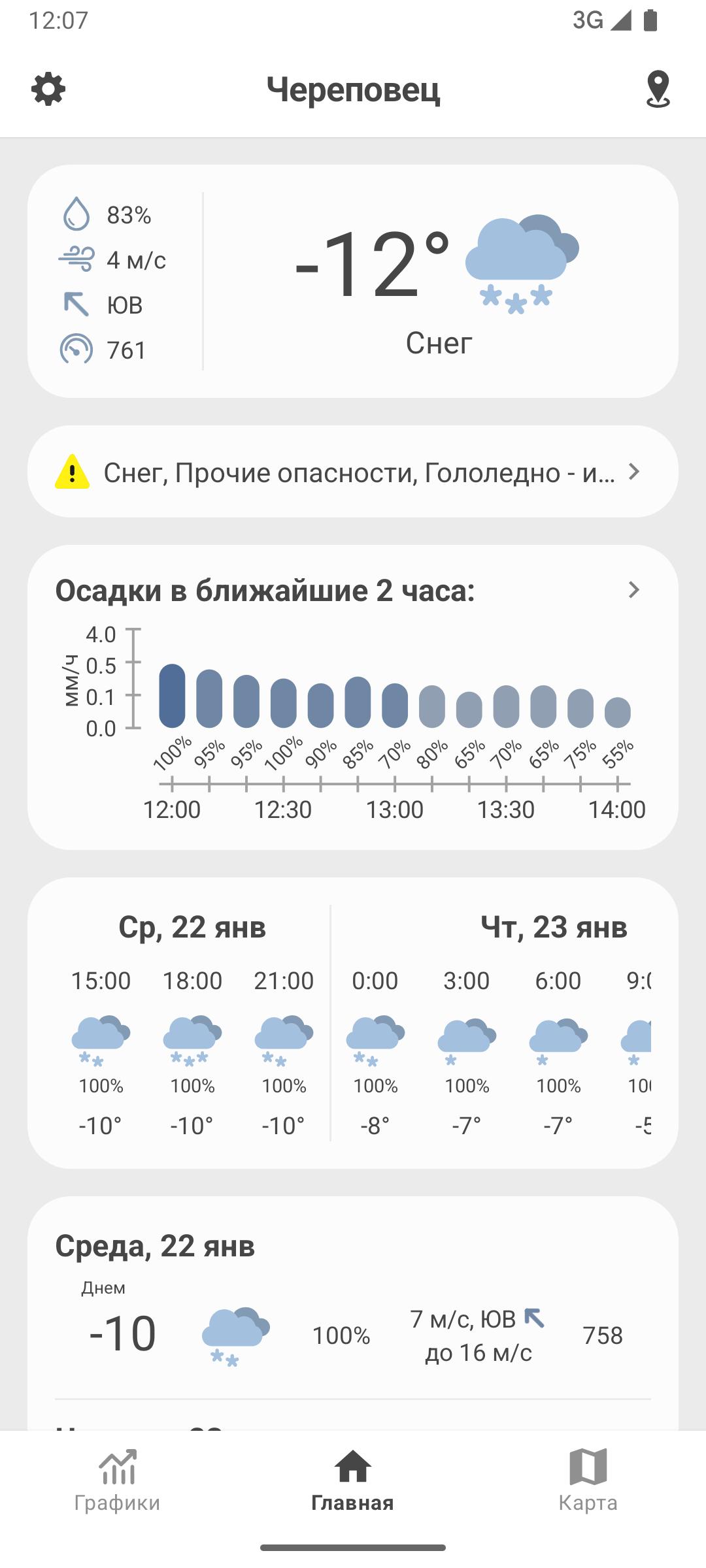 — 本周的天气预报以及直观的图表,以及未来几天的天气预报(以 3 小时为单位)。