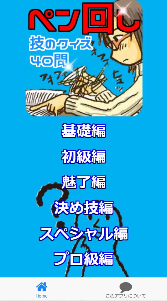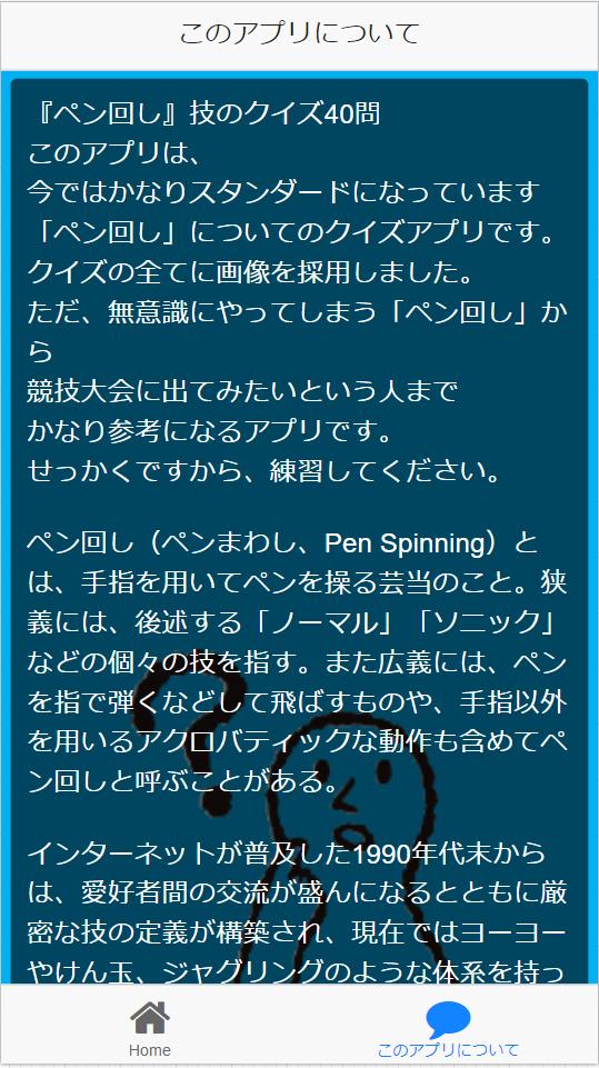 今ではかなりスタンダードになっています「ペン回し」についてのクイズアプリです。