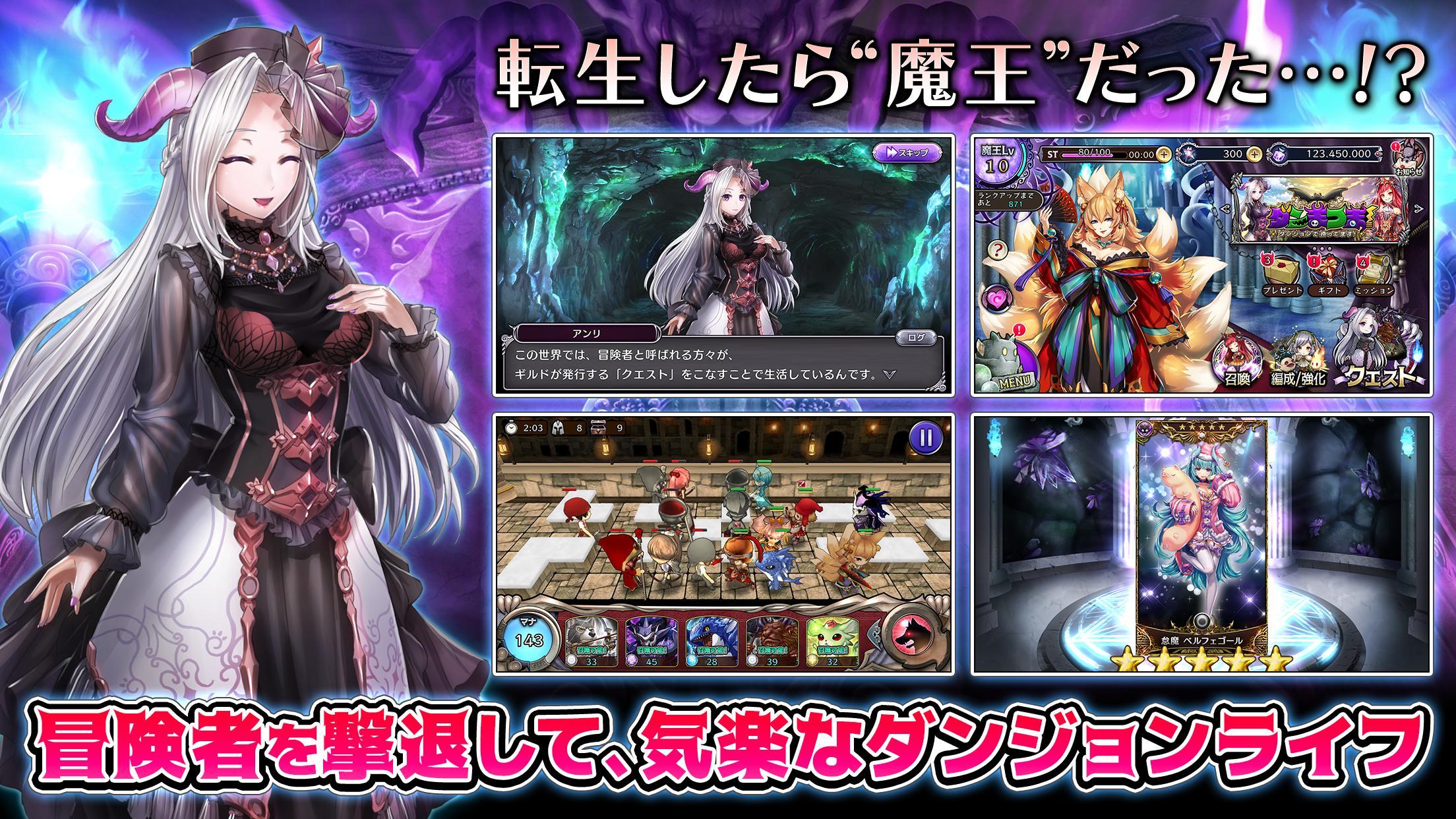 チュートリアルガチャを何度でも引き直せます。お気に入りのキャラを手に入れてダンジョン運営を始めましょう!