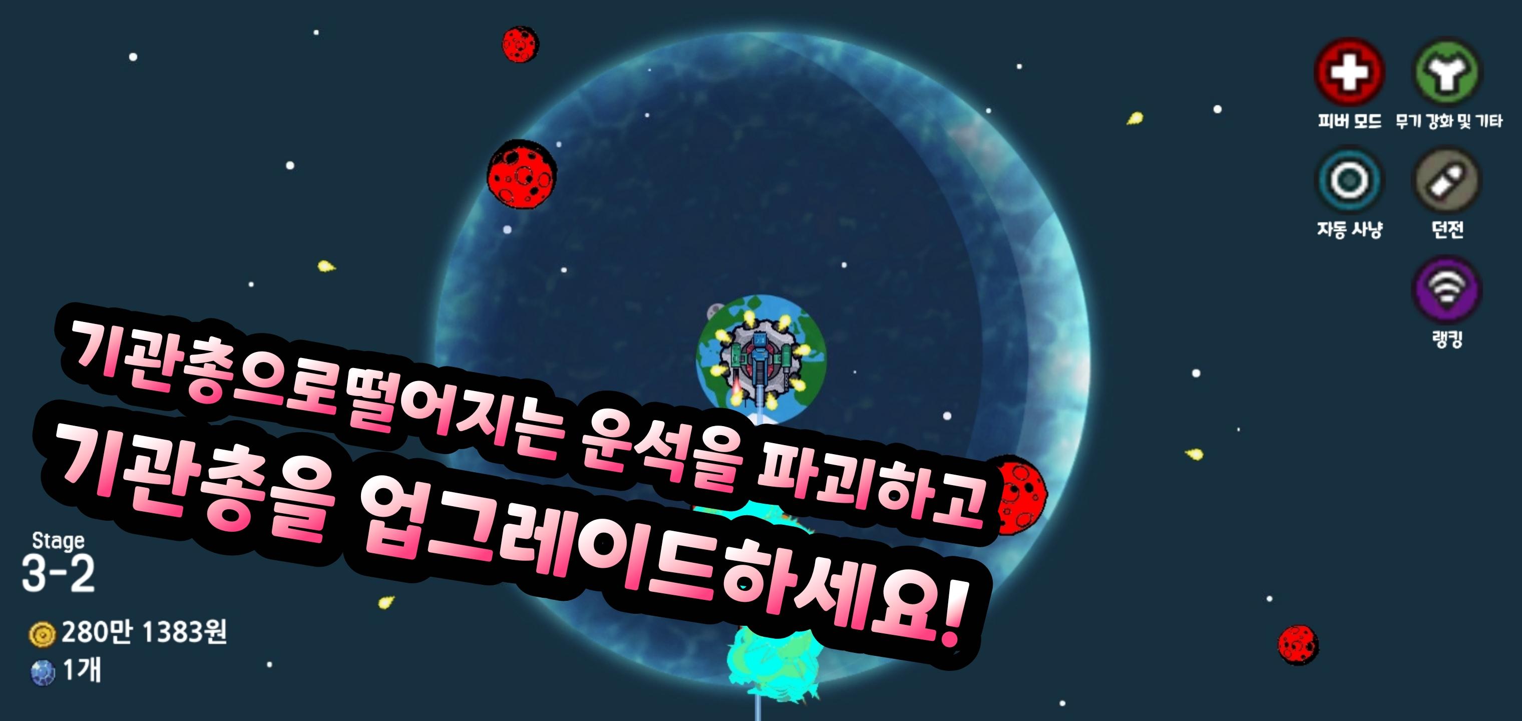 운석을 파괴하여 얻은 돈으로 기관총을 업그레이드 할 수 있습니다