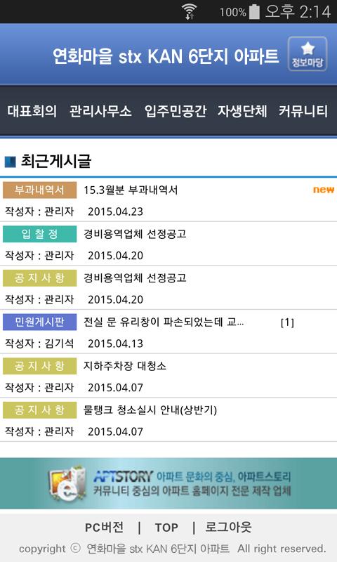 4. 대표회의. 관리 사무소. 입주민 공간. 커뮤니티.. 게시판