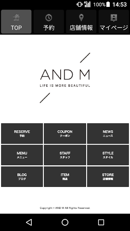 这是美发沙龙 AND M 的官方应用程序。可以通过应用程序全天 24 小时进行预订。