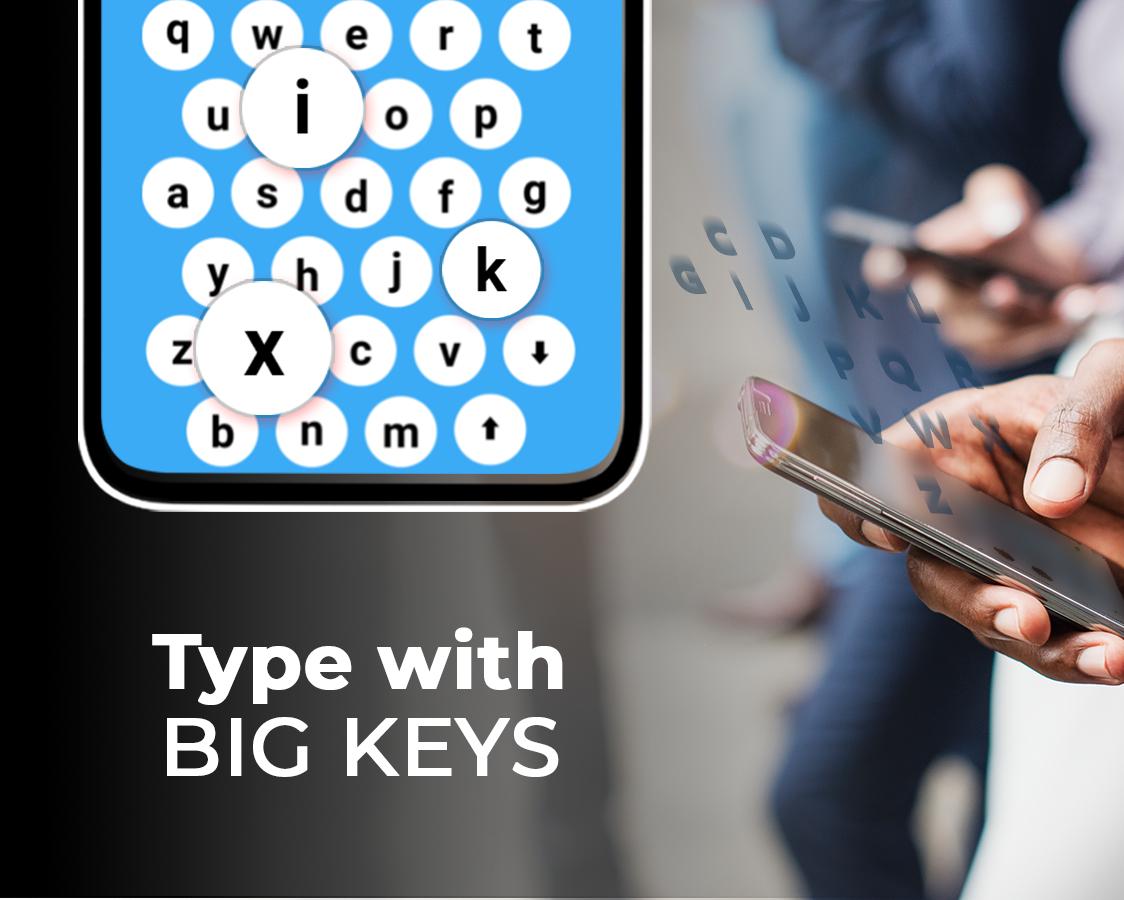 Big button Keyboard has larger buttons than the normal keyboard so it's easier to type accurately on small screens. Download now the Large Keyboard & enjoy the best typing experience.