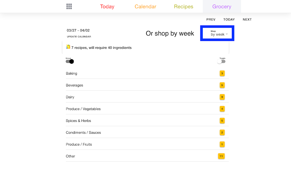 创建配方,缩放配料,生成杂货清单和安排将来的用餐