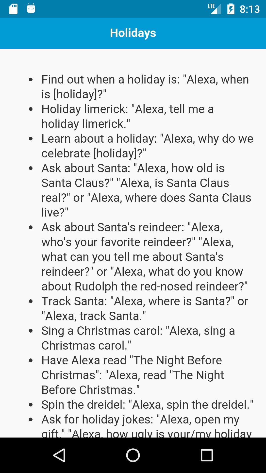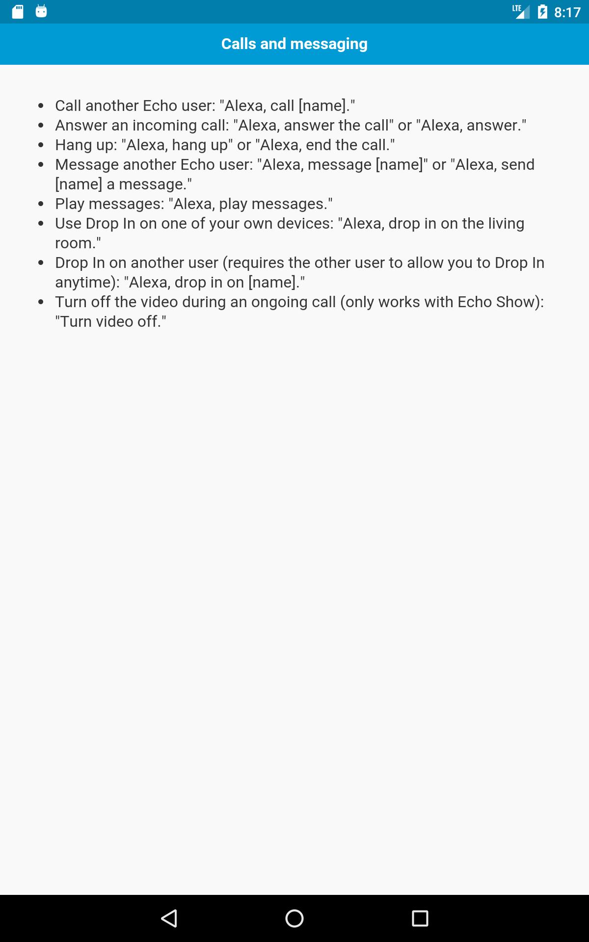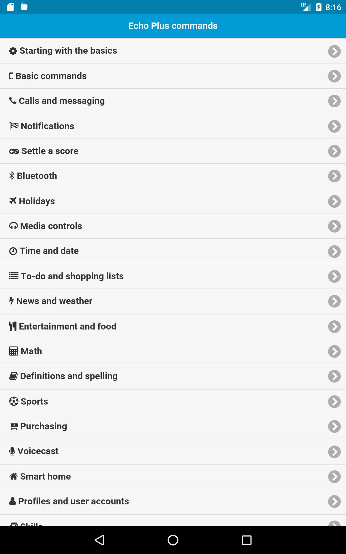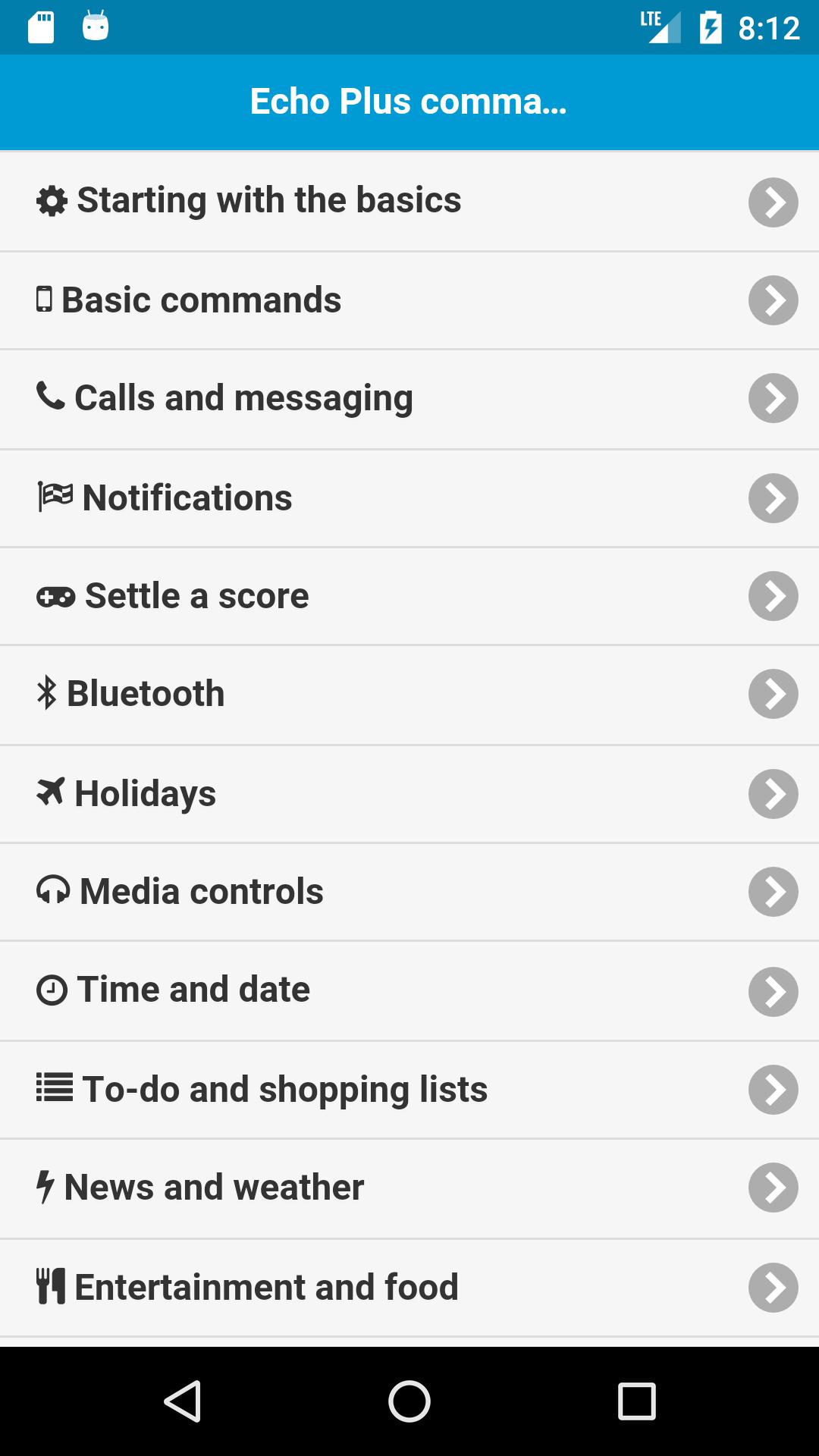 From this app, you will get full list of commands for your Echo Plus. All are organised by category. So you can find easily any command you need.
