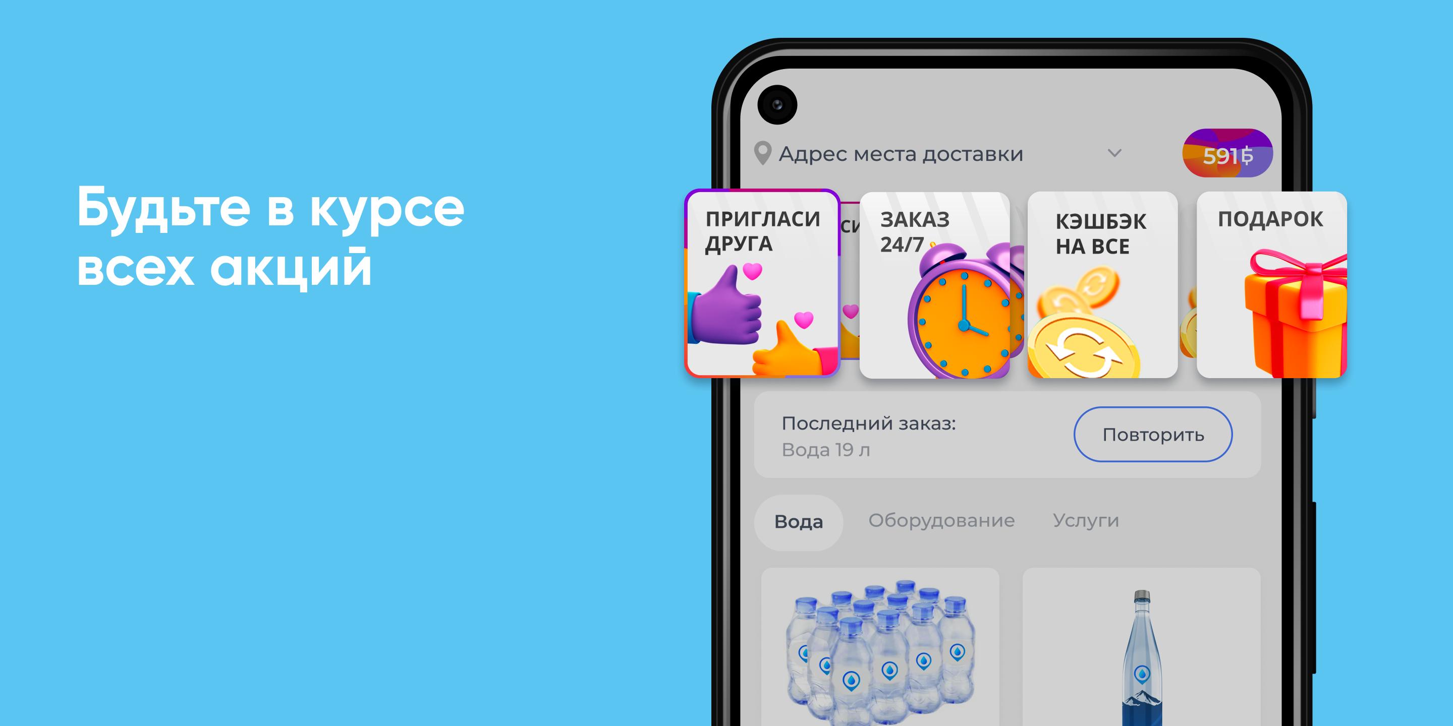 Laden Sie die Khrustal Belogorya-App auf Ihr Smartphone herunter und bestellen Sie rund um die Uhr Wasser. Sie können eine Bestellung mit nur einem Klick wiederholen, Ihre gesamte Kaufhistorie einsehen und über alle Werbeaktionen des Unternehmens informiert sein.
