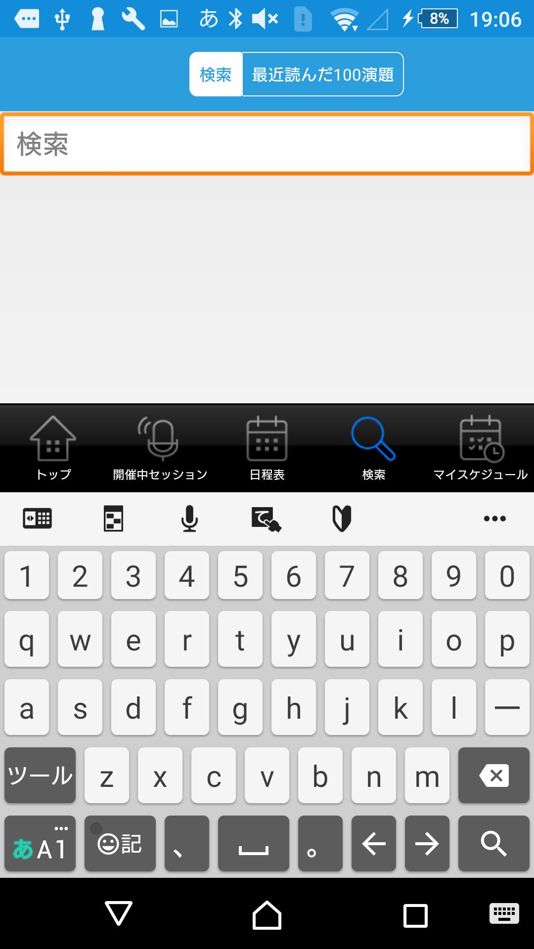 会期中、その時刻に発表されているセッションが一覧表示します。