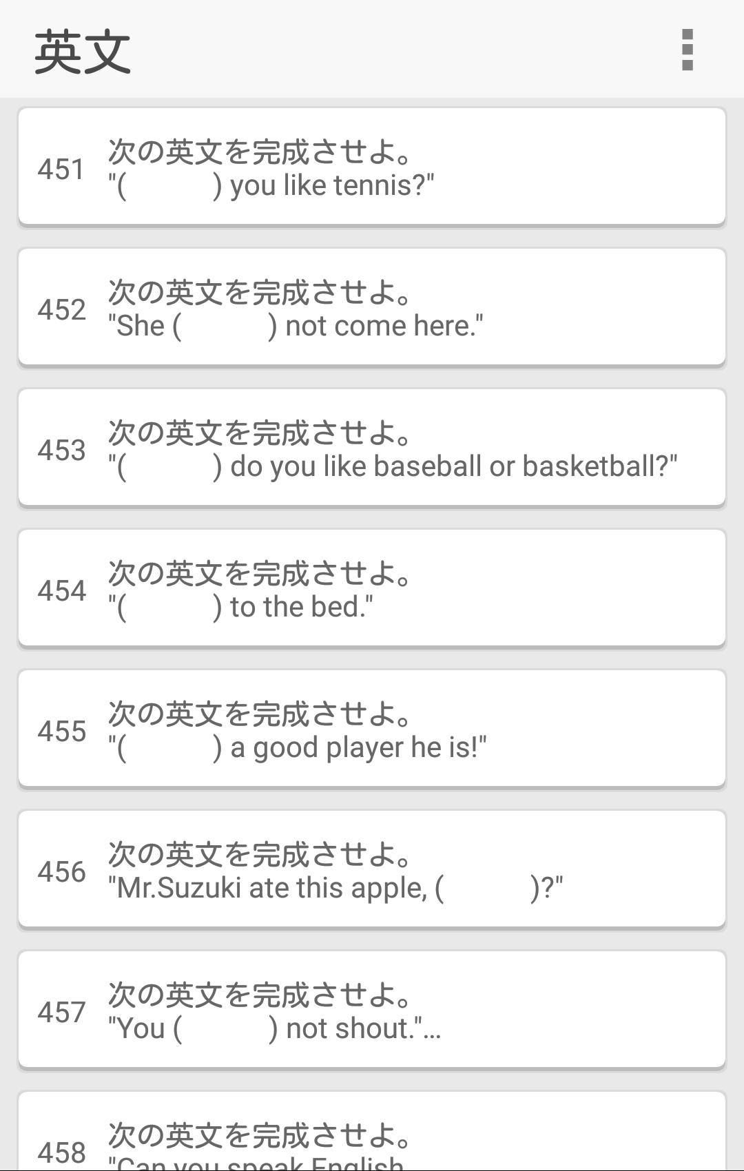 高校入試・受験対策問題集の『英語』アプリ登場!一問一答形式で、中学1年生~3年生までの範囲をカバーしています。※2018年度用に問題データを更新しました