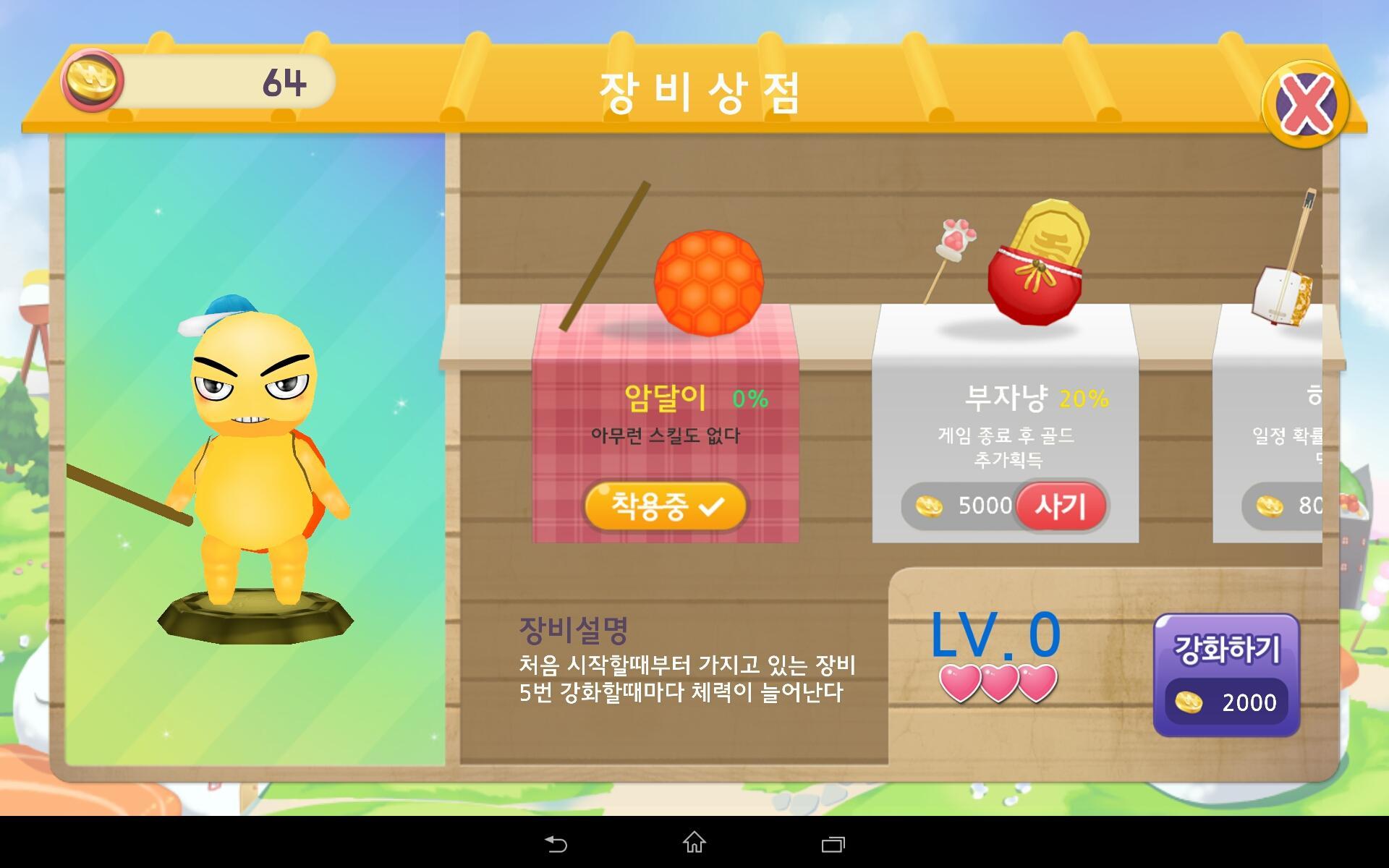 암달이를 좌우로 움직이면서 맞는 단어의 뜻을 선택하면 점수가 올라가고
