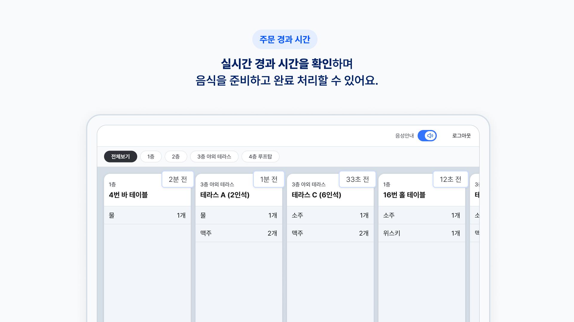 - Sie können alle eingegangenen Bestellungen in Tischreihenfolge in Echtzeit überprüfen.