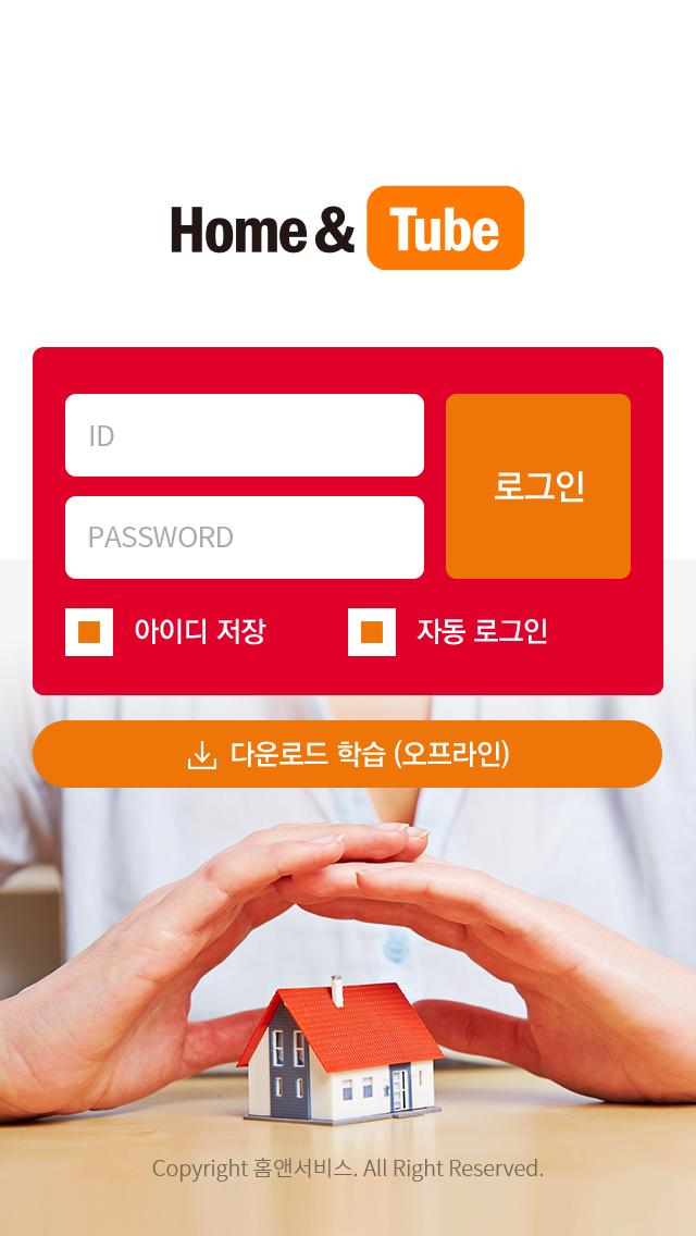 PC환경의 홈앤서비스 Home&Tube 사이버연수원(http://hns.hunet.co.kr)의 아이디와 비밀번호로 로그인 가능하며, 주요 서비스를 본 모바일 앱에서도 사용하실 수 있습니다.