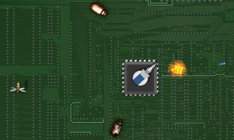 We've all heard of viruses and bugs taking over your software, but what happens when they attack your hardware? Vicious robotic metal bugs attacking your computer chip, with their hungry steel jaws... Isn't it lucky then, that your chip just happens to have a massive blaster strapped to it?! Instead of just sitting there, you can strike back!