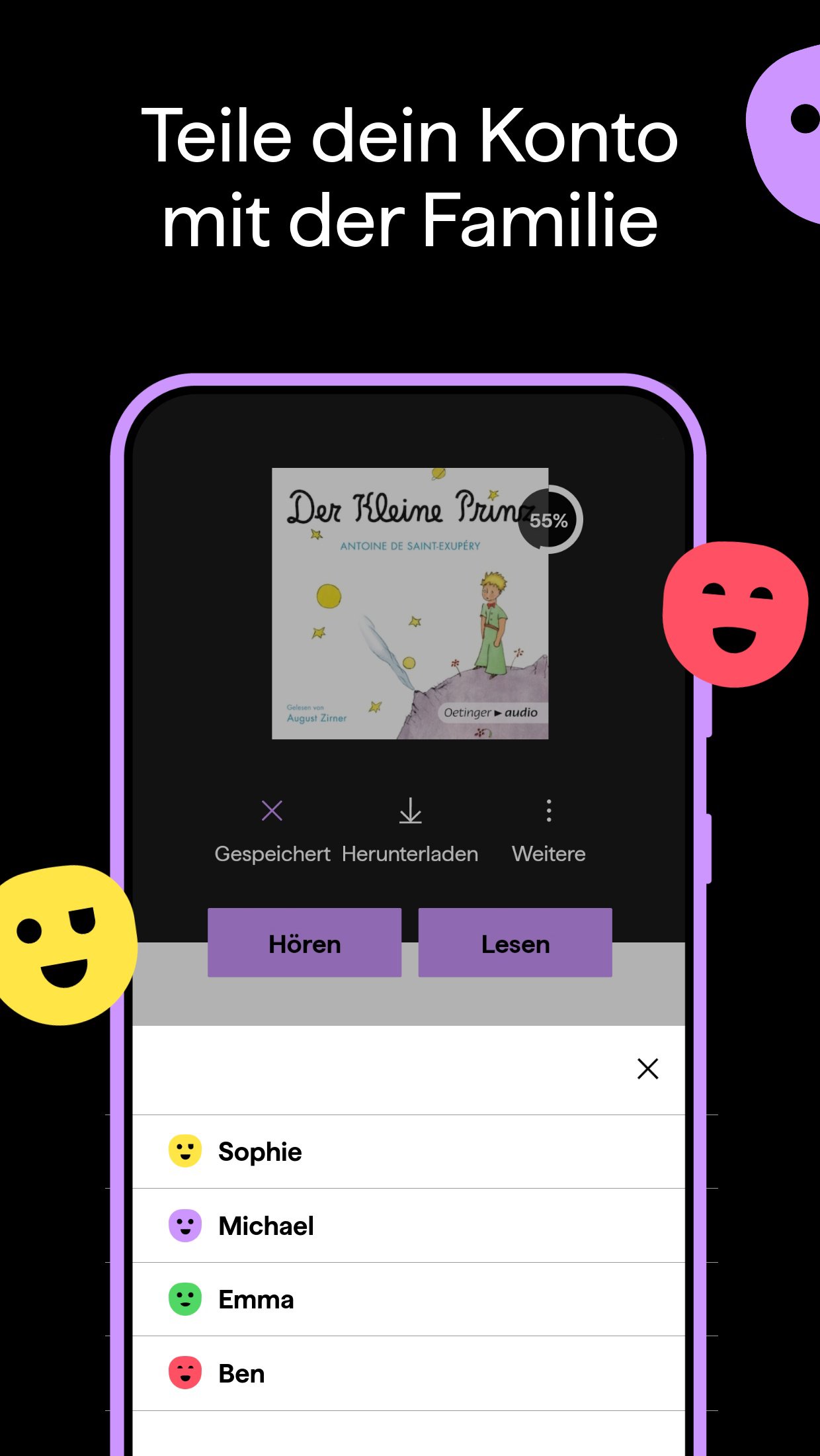 Falls bei euch in der Familie mehrere Personen gleichzeitig hören möchten, dann könnt ihr euch ein Konto teilen und auf unserer Webseite Profile hinzufügen. Inklusive Kontoinhaber*in kann ein Konto bis zu 5 Profile beinhalten und alle Profile haben ihre eigenen Listen und Tipps. Durch die Wahl eines Kinderprofils, könnt ihr außerdem die Inhalte für die kleinsten Hörer*innen anpassen.