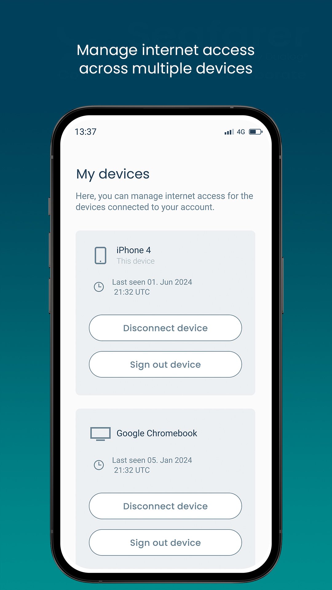 Verwalten Sie den Zugriff auf mehreren Geräten unter demselben Konto. Funktioniert problemlos auf Mobilgeräten und Tablets über die App oder auf dem Desktop über die Weboberfläche.