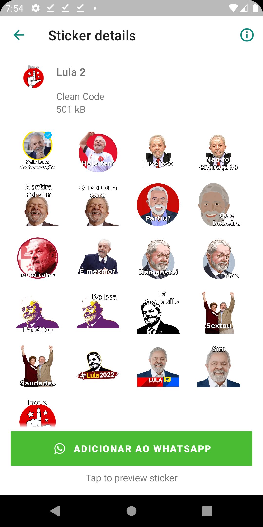 Dois pacotes de figurinhas do presidente Lula em 2022! Baixe agora mesmo!