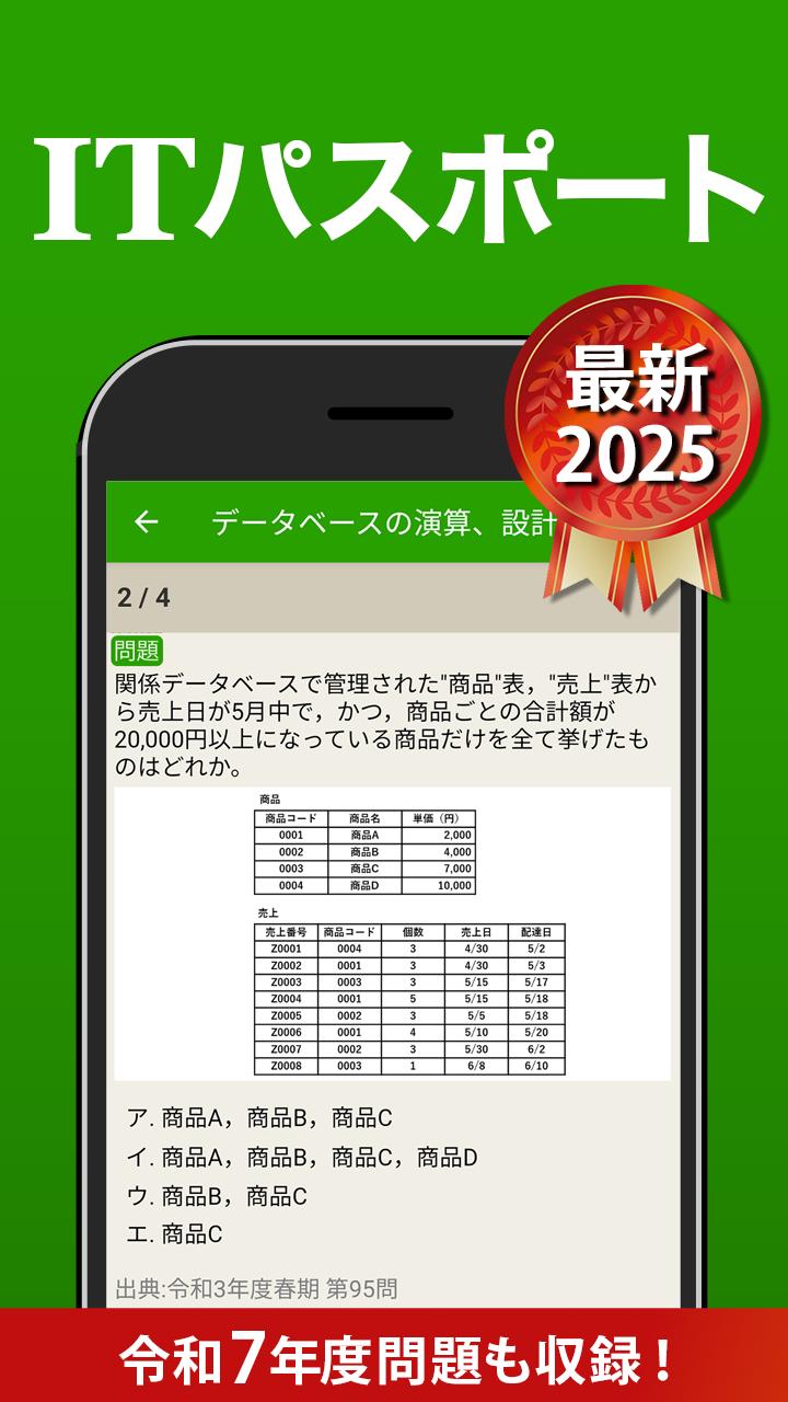 バージョン9.9.0 最新の「令和7年度 ITパスポート試験 公開問題」を追加収録しました!