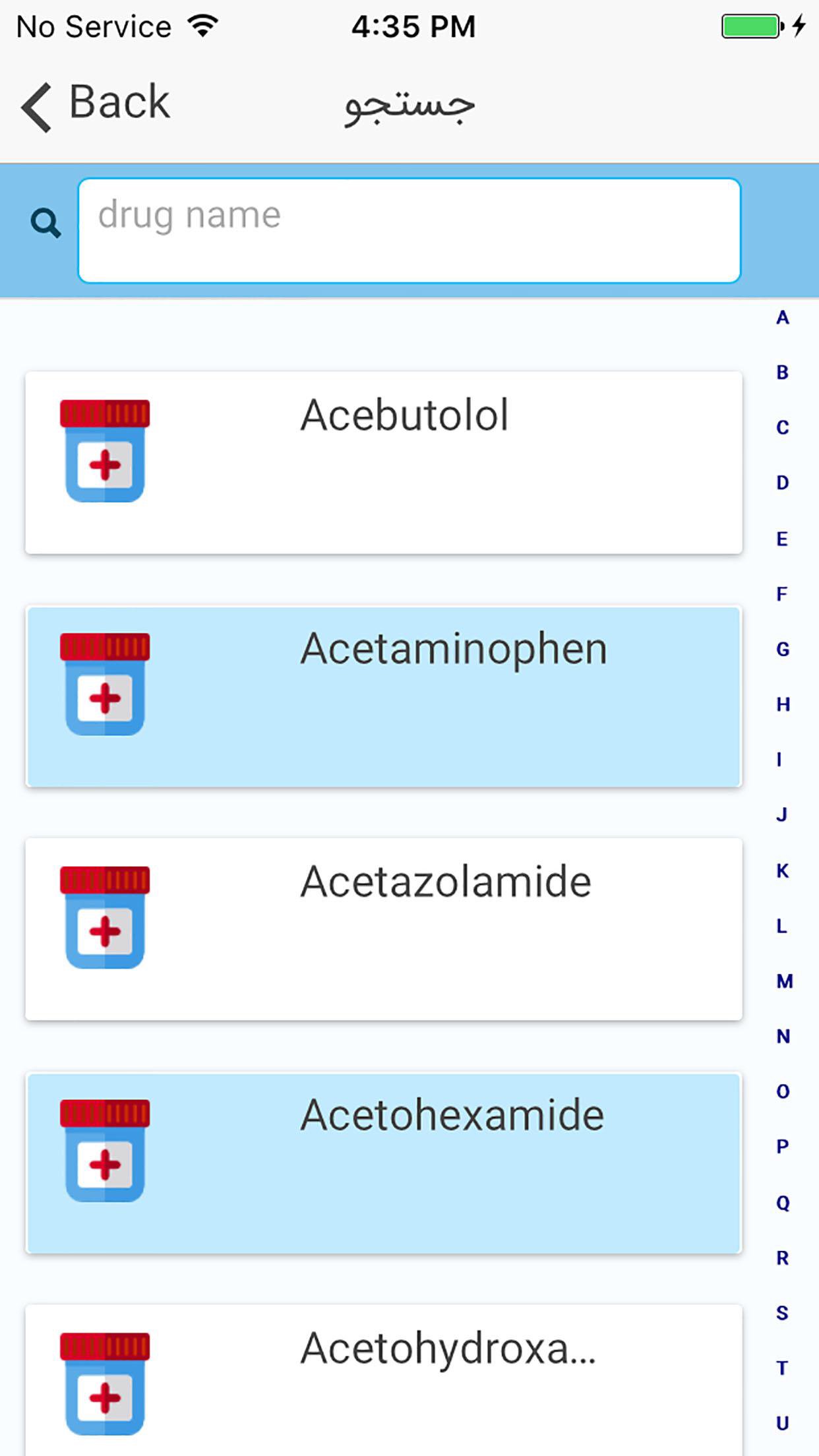 در این اپلیکیشن میزان دوز داورها برای تجویز به بیماران کلیوی بیان شده است که با قابلیت جستجو در بین فهرست کاملی از داروها امکان یافتن هر دارو میسر می باشد.